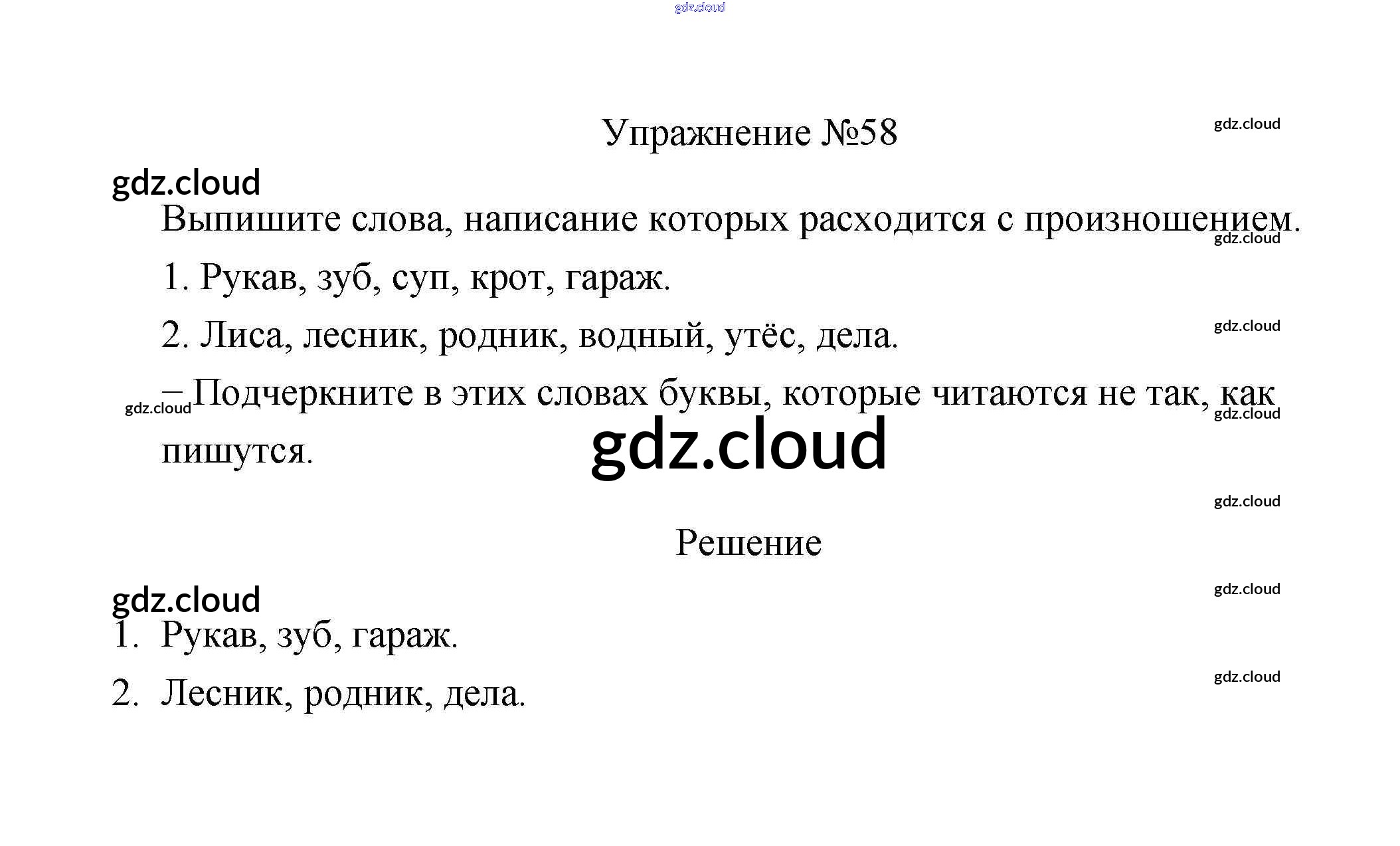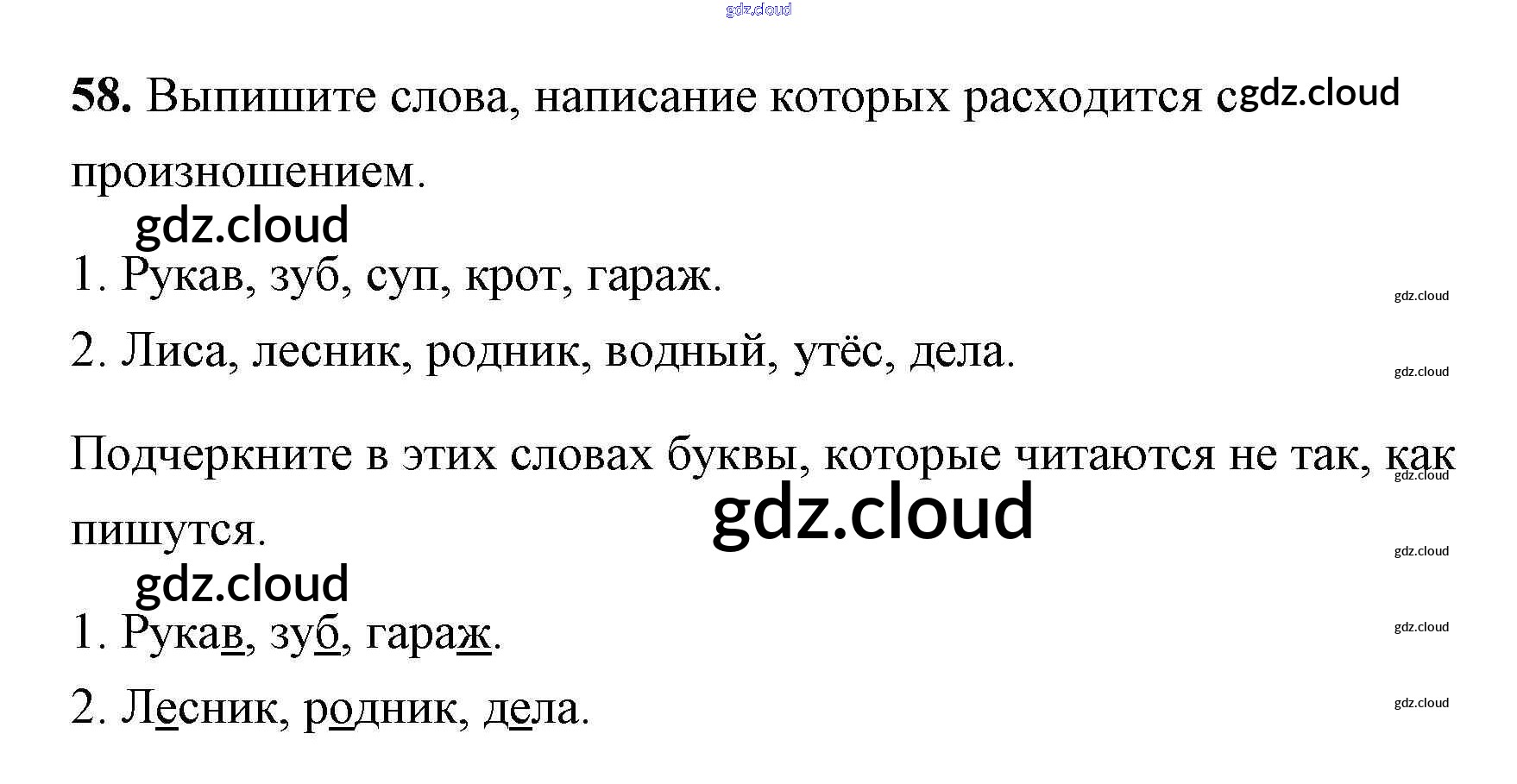 Ответ на задание 58 Учебник Русский язык за 2 (второй) класс Климанова, Бабушкина Перспектива 2015, 2020 Часть 1, 2