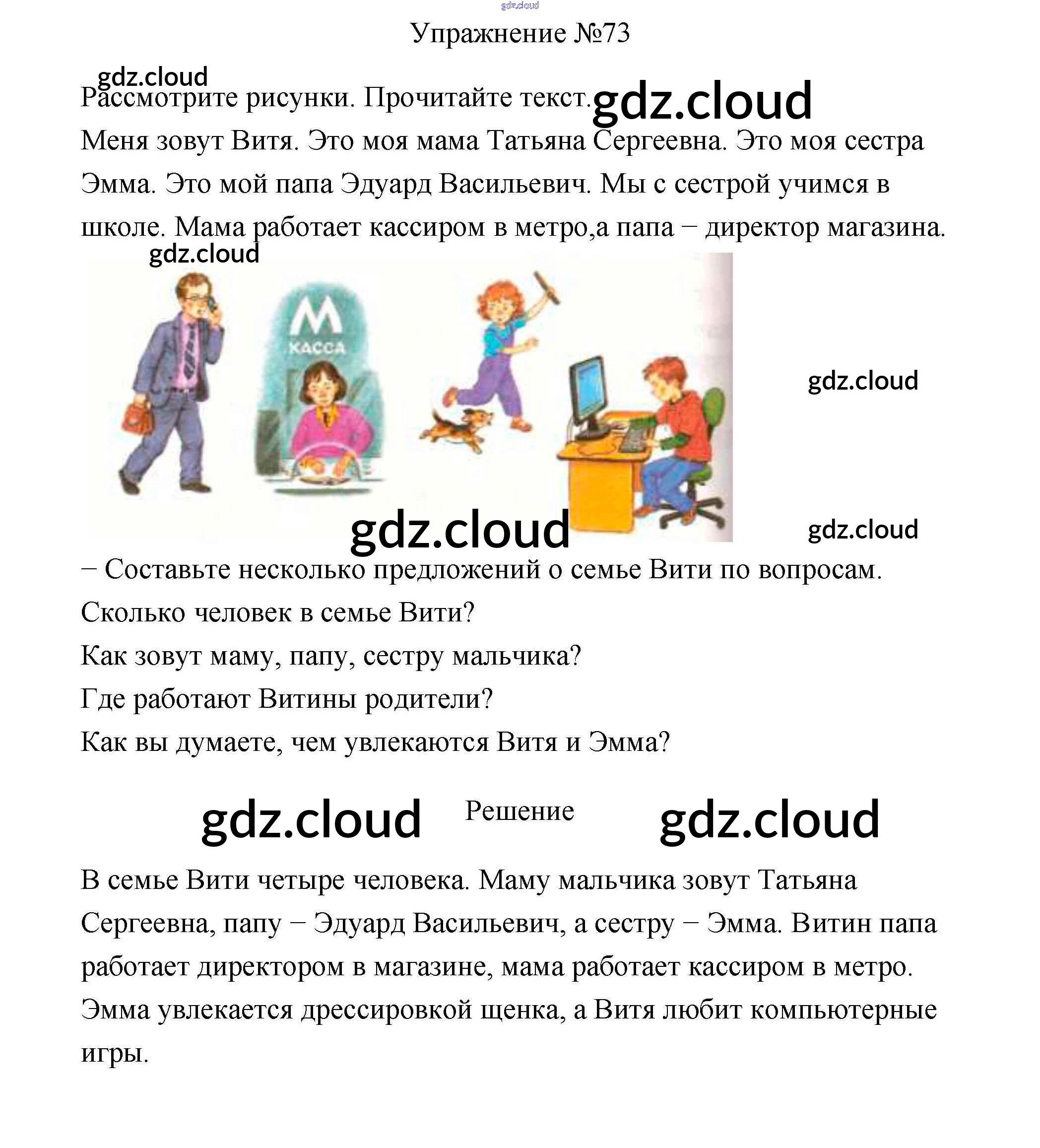 Ответ на задание 73 Учебник Русский язык за 2 (второй) класс Климанова, Бабушкина Перспектива 2015, 2020 Часть 1, 2