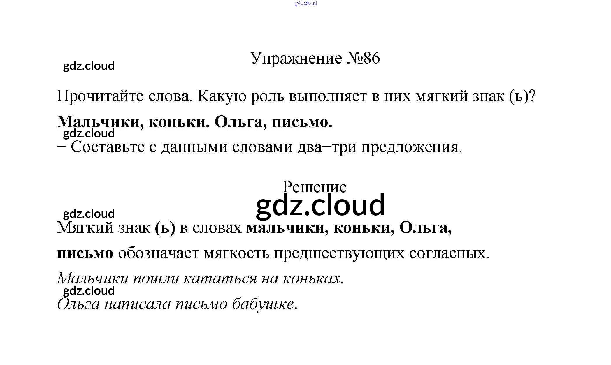 Ответ на задание 86 Учебник Русский язык за 2 (второй) класс Климанова, Бабушкина Перспектива 2015, 2020 Часть 1, 2
