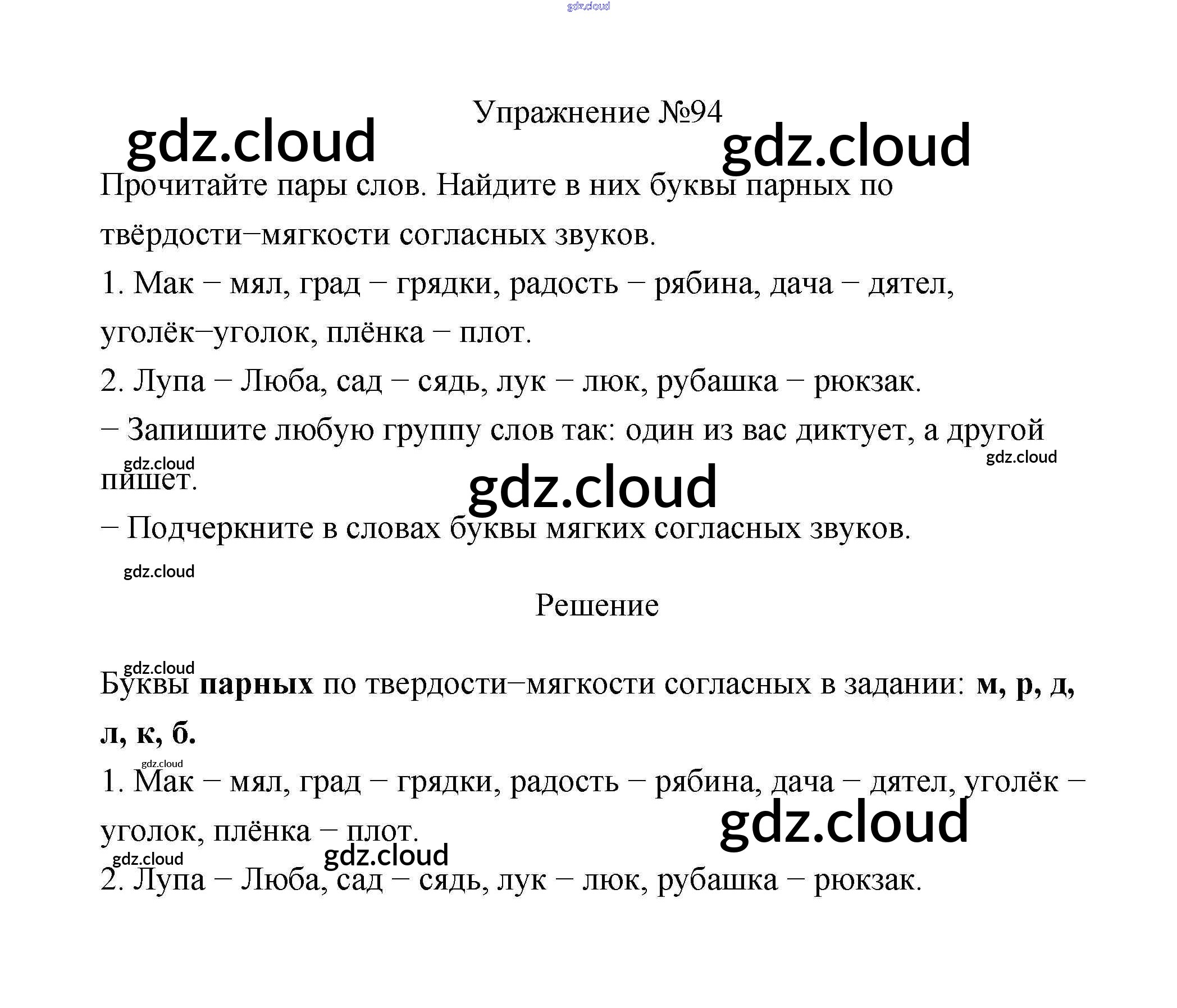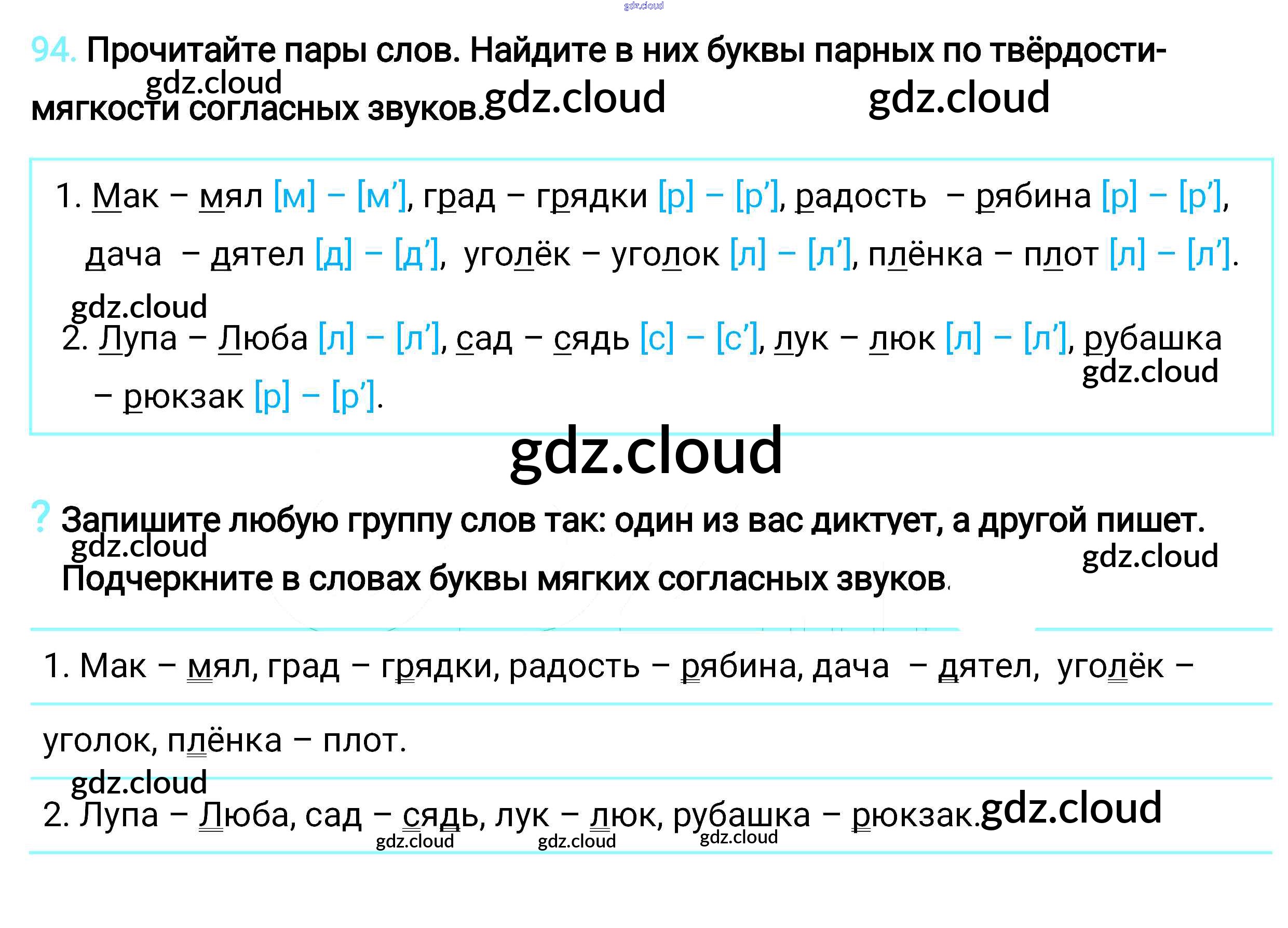 Ответ на задание 94 Учебник Русский язык за 2 (второй) класс Климанова, Бабушкина Перспектива 2015, 2020 Часть 1, 2
