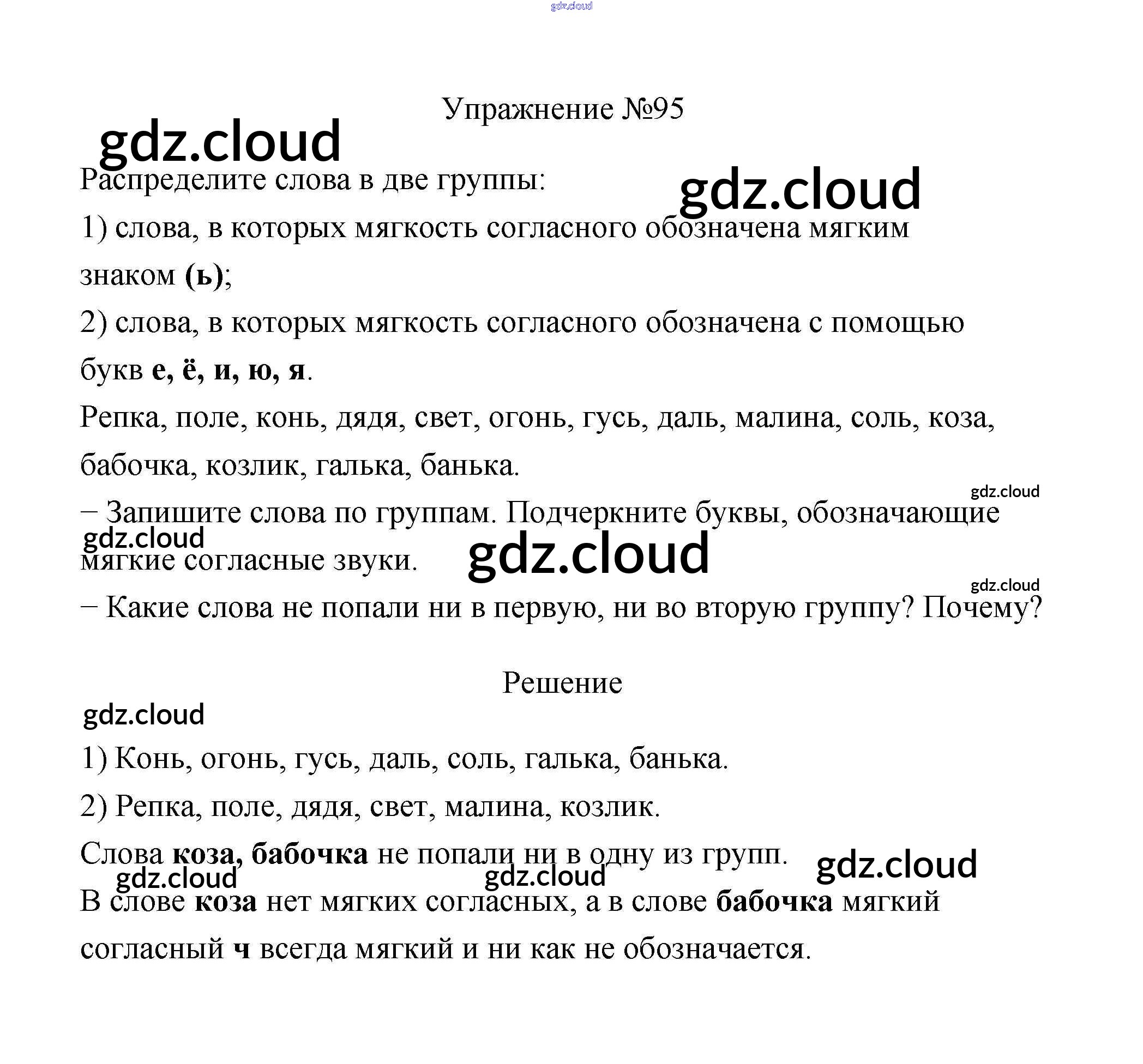 Ответ на задание 95 Учебник Русский язык за 2 (второй) класс Климанова, Бабушкина Перспектива 2015, 2020 Часть 1, 2