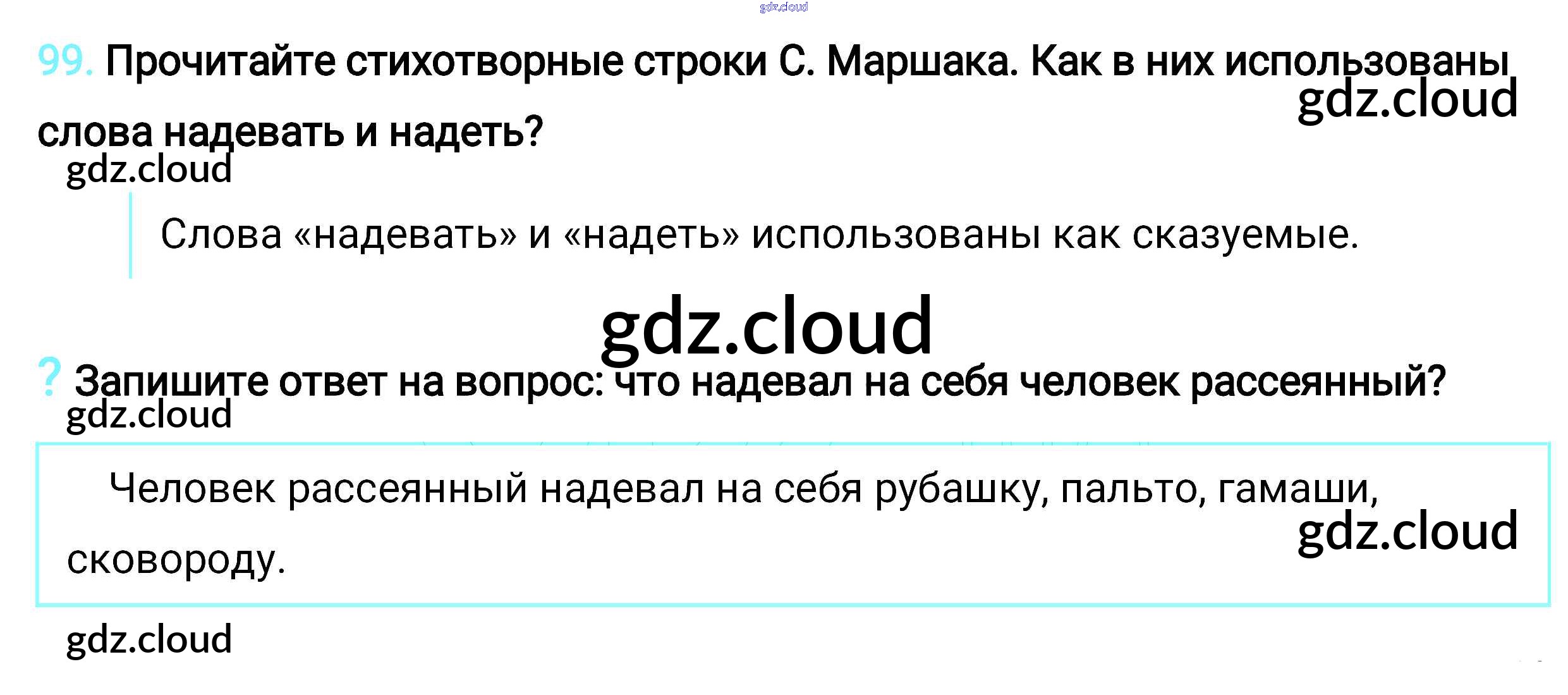 Ответ на задание 99 Учебник Русский язык за 2 (второй) класс Климанова, Бабушкина Перспектива 2015, 2020 Часть 1, 2