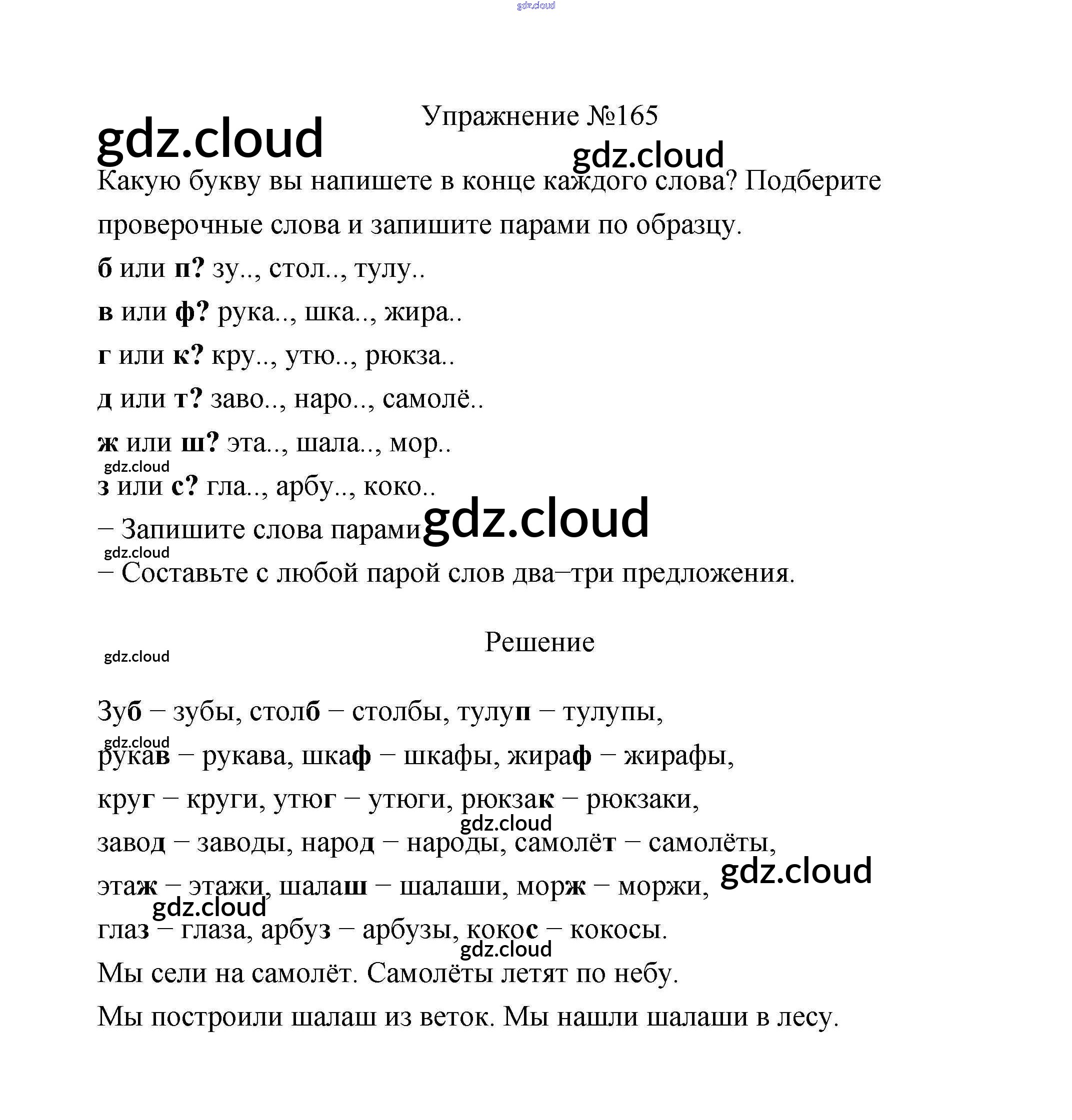 Ответ на задание 165 Учебник Русский язык за 2 (второй) класс Климанова, Бабушкина Перспектива 2015, 2020 Часть 1, 2
