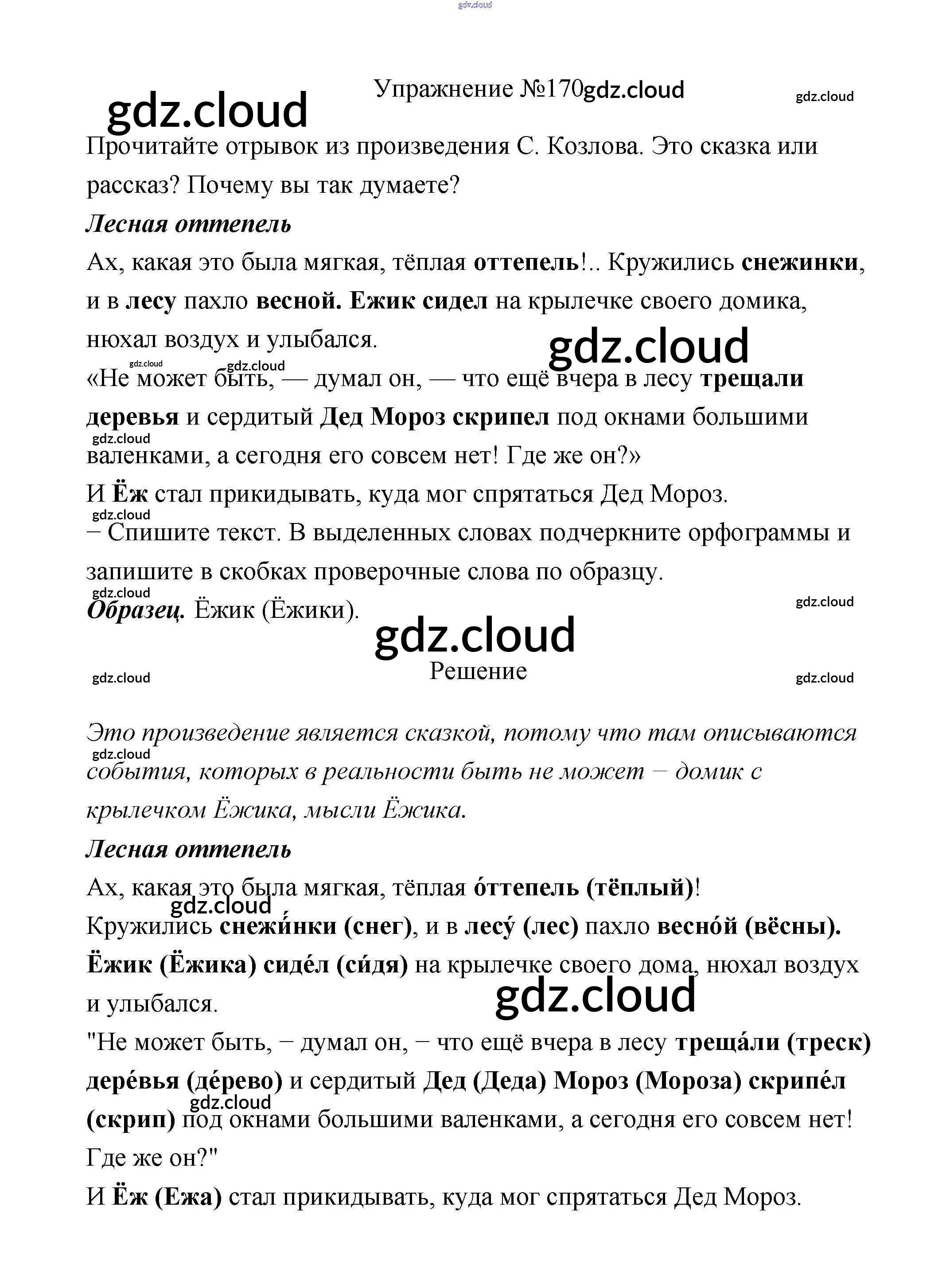 Ответ на задание 170 Учебник Русский язык за 2 (второй) класс Климанова, Бабушкина Перспектива 2015, 2020 Часть 1, 2