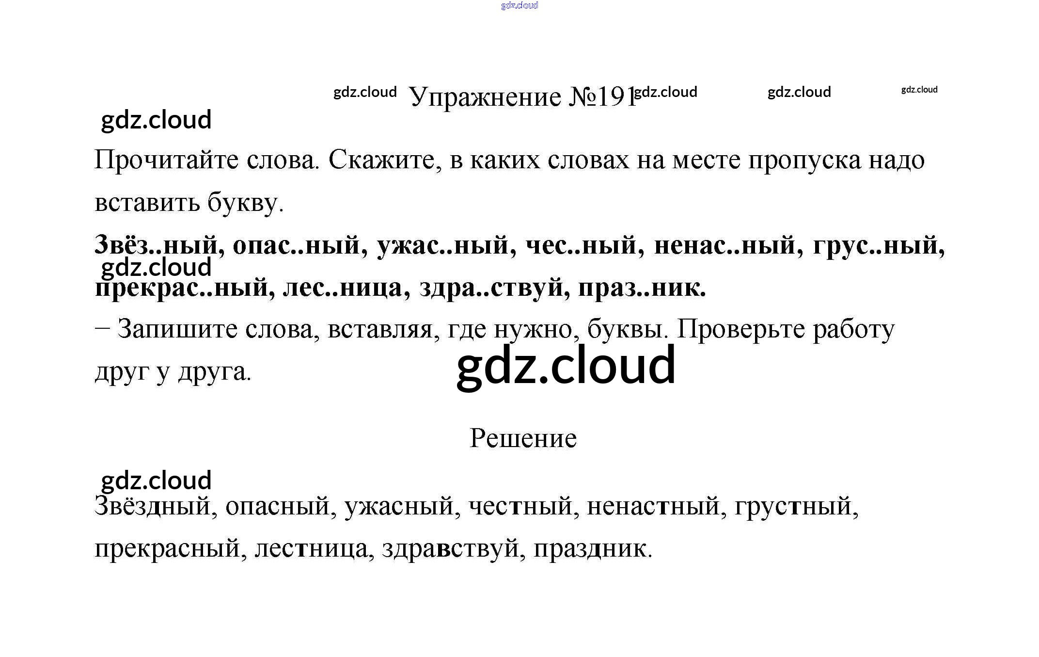 Ответ на задание 191 Учебник Русский язык за 2 (второй) класс Климанова, Бабушкина Перспектива 2015, 2020 Часть 1, 2