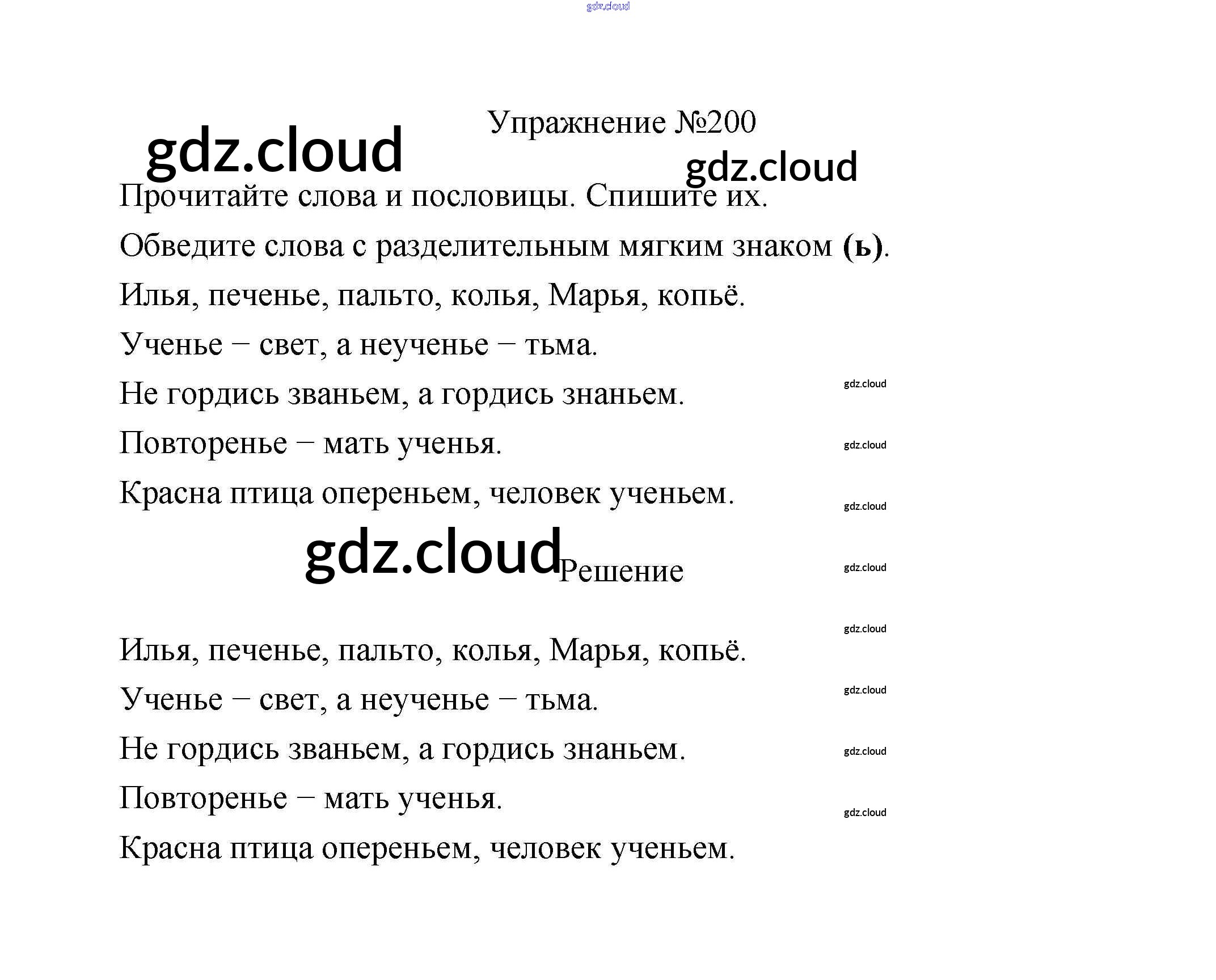 Ответ на задание 200 Учебник Русский язык за 2 (второй) класс Климанова, Бабушкина Перспектива 2015, 2020 Часть 1, 2