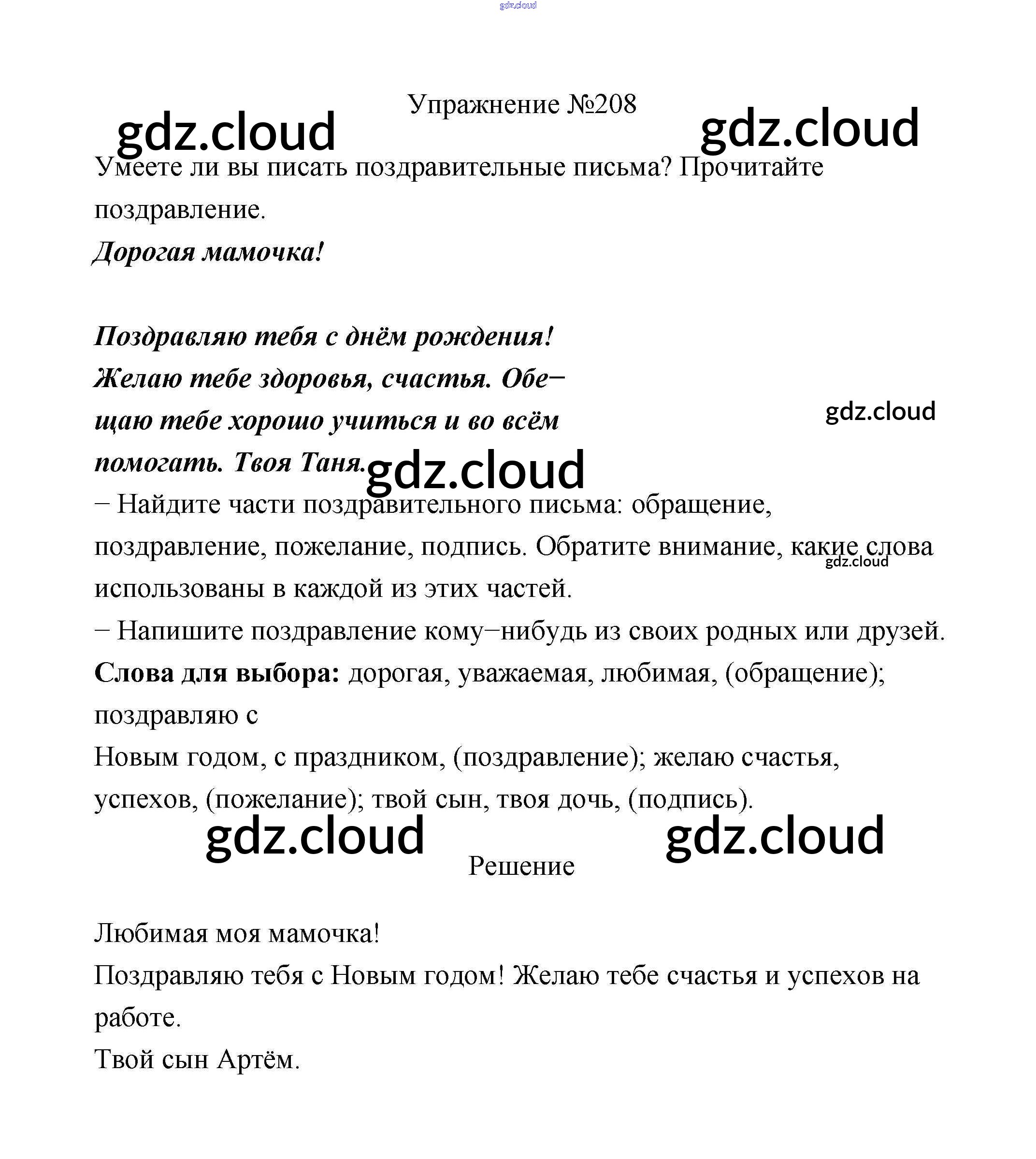 Ответ на задание 208 Учебник Русский язык за 2 (второй) класс Климанова, Бабушкина Перспектива 2015, 2020 Часть 1, 2