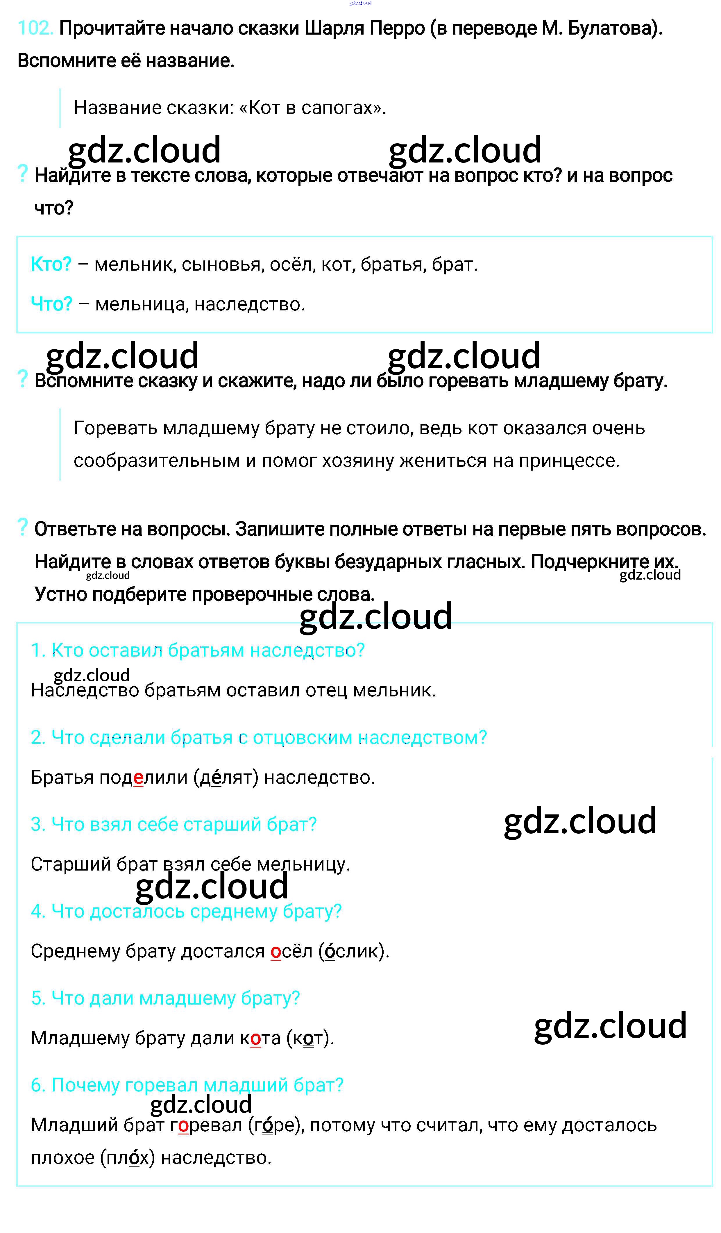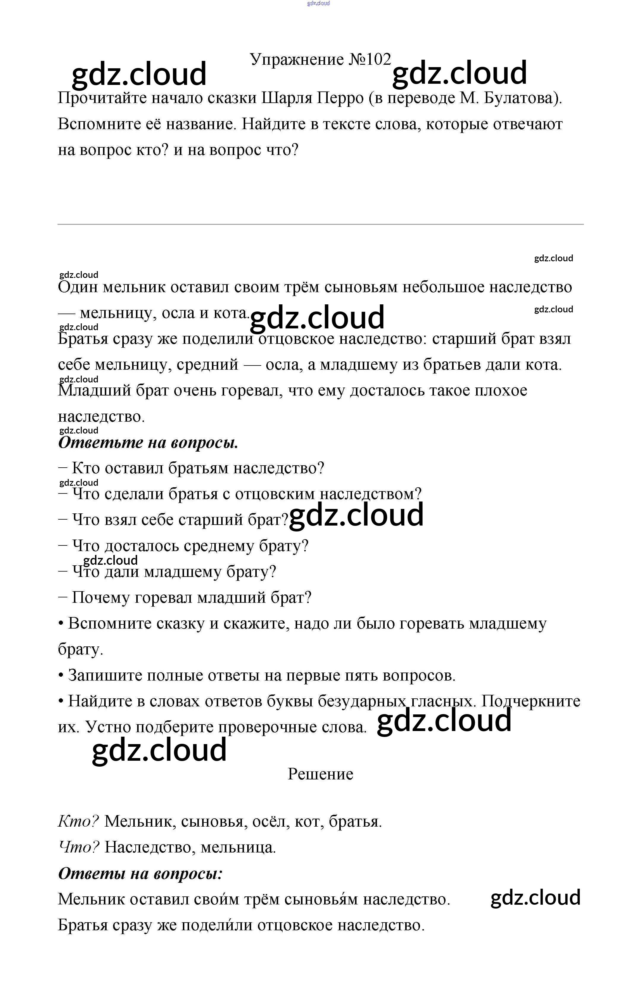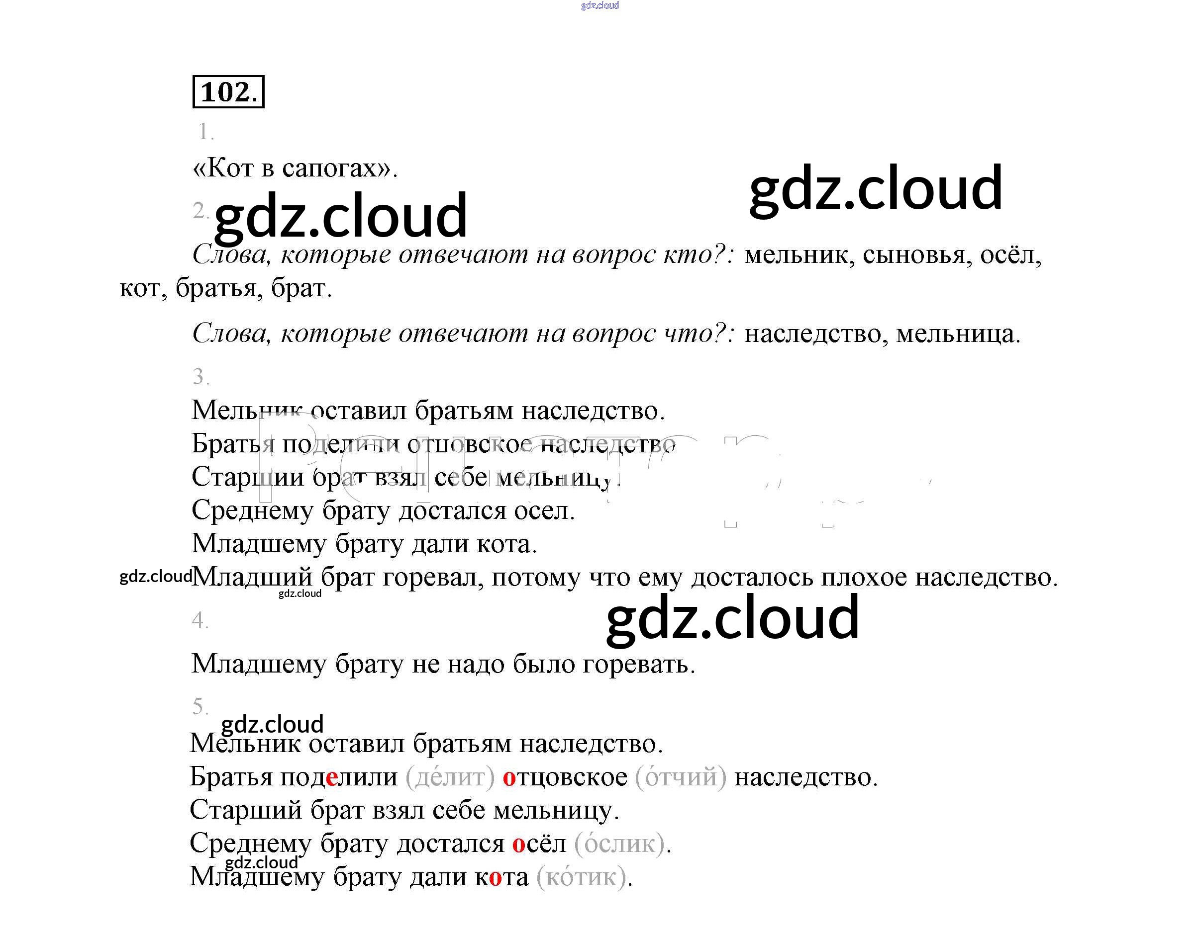 Ответ на задание 102 Учебник Русский язык за 2 (второй) класс Климанова, Бабушкина Перспектива 2015, 2020 Часть 1, 2