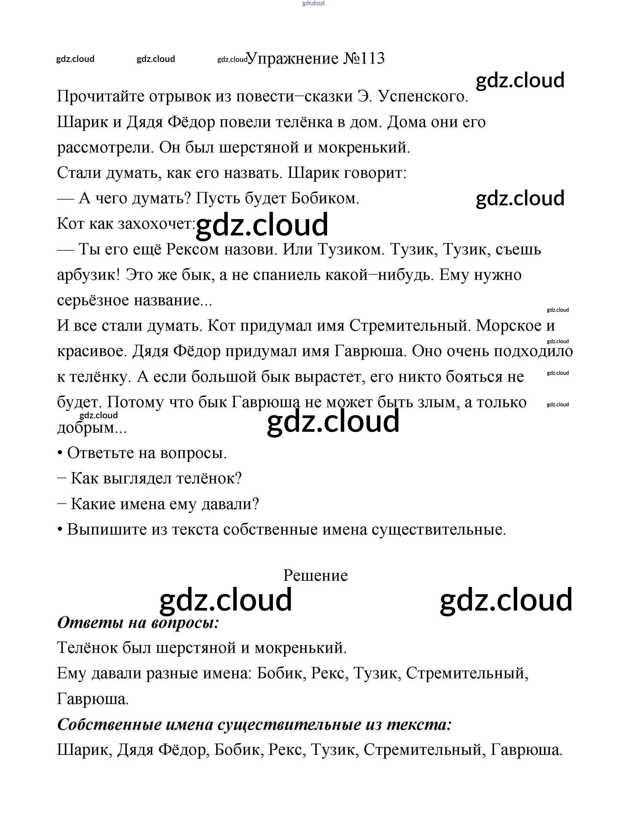 Ответ на задание 113 Учебник Русский язык за 2 (второй) класс Климанова, Бабушкина Перспектива 2015, 2020 Часть 1, 2