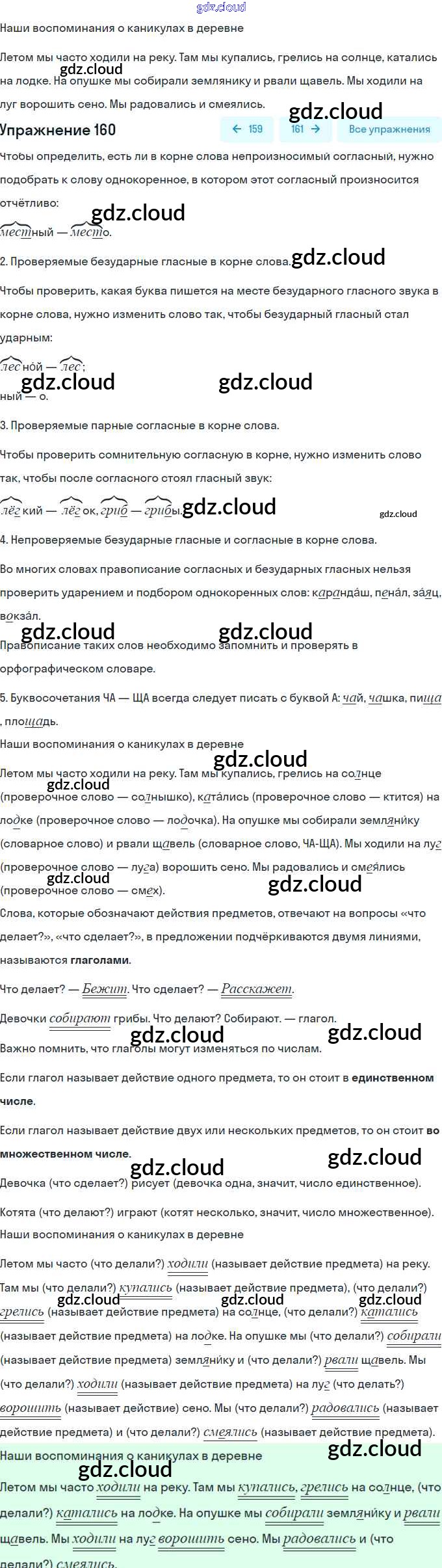 Ответ на задание 160 Учебник Русский язык за 2 (второй) класс Климанова, Бабушкина Перспектива 2015, 2020 Часть 1, 2