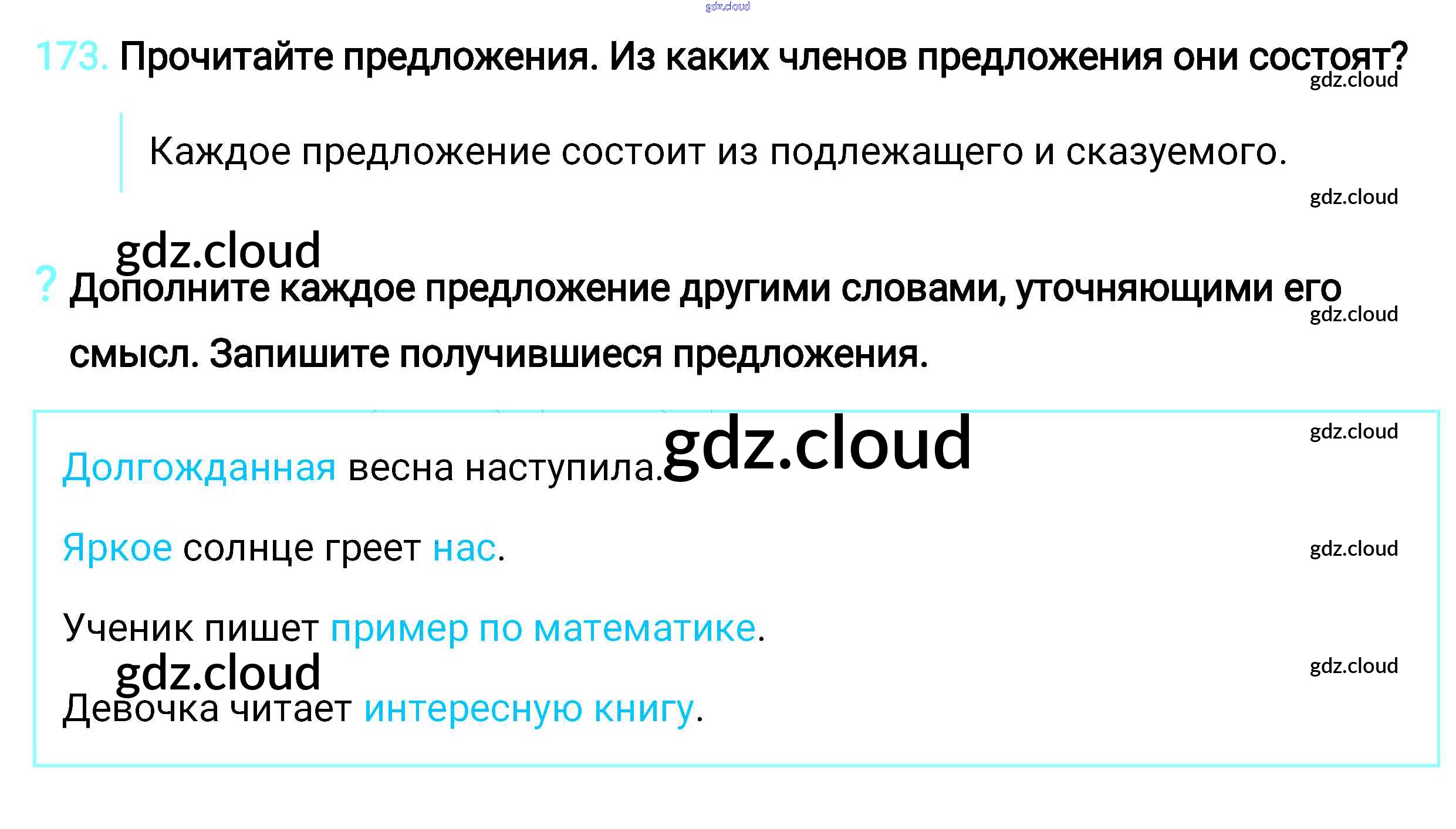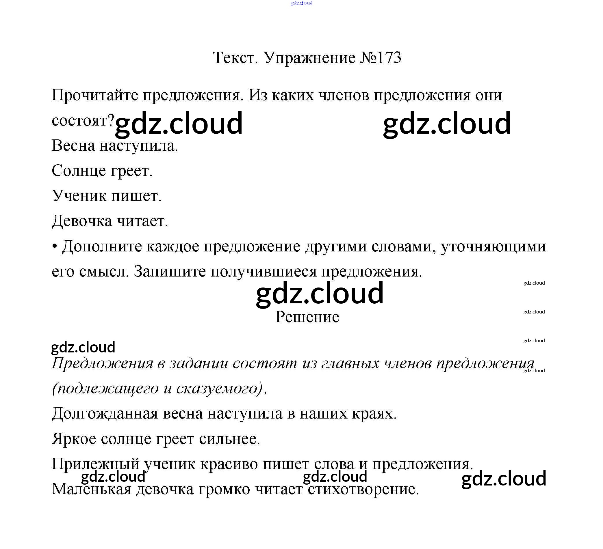 Ответ на задание 173 Учебник Русский язык за 2 (второй) класс Климанова, Бабушкина Перспектива 2015, 2020 Часть 1, 2