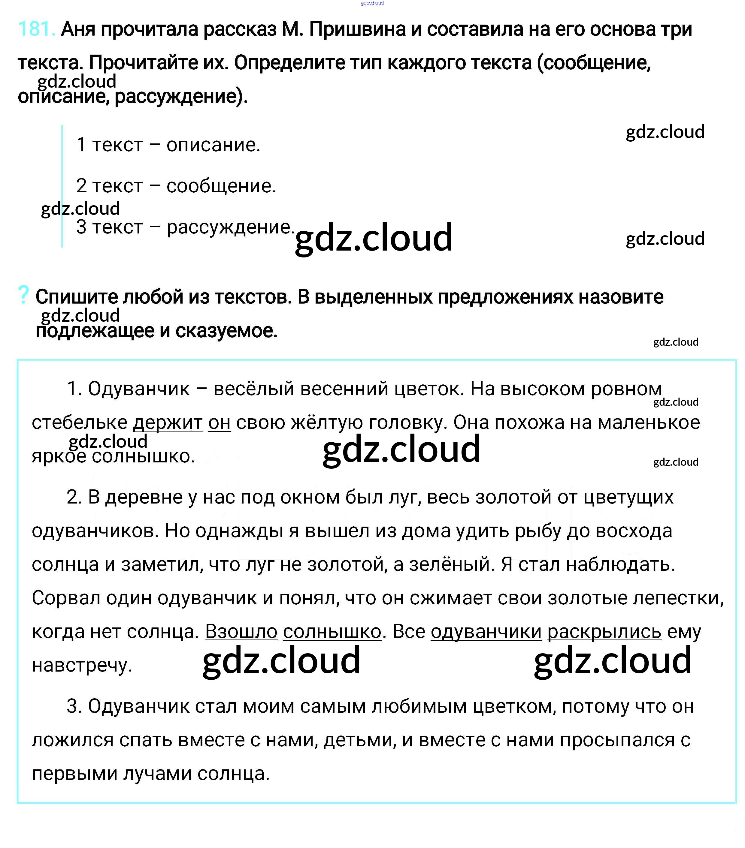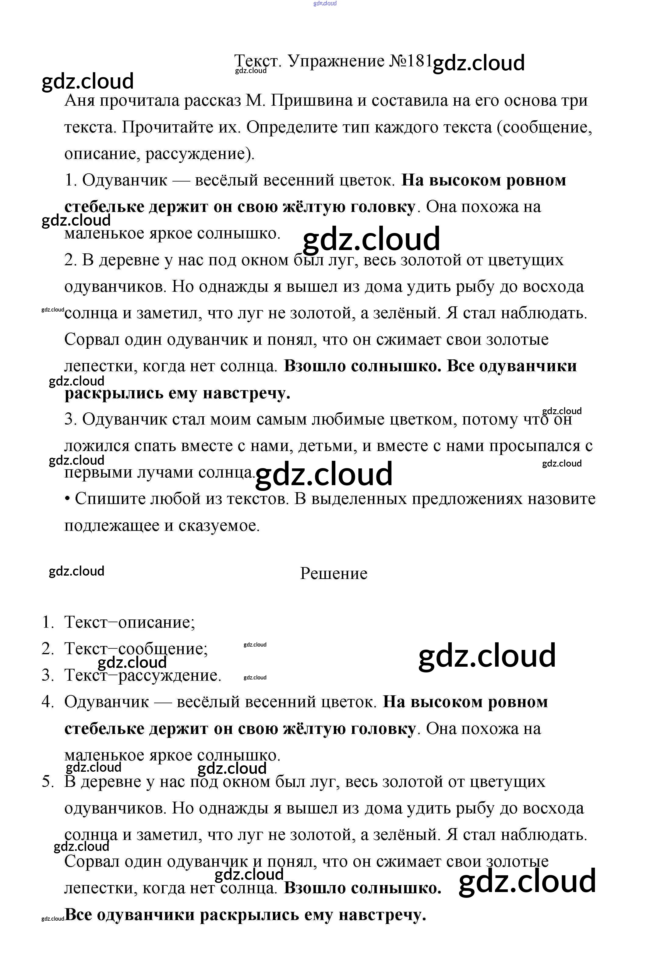 Ответ на задание 181 Учебник Русский язык за 2 (второй) класс Климанова, Бабушкина Перспектива 2015, 2020 Часть 1, 2