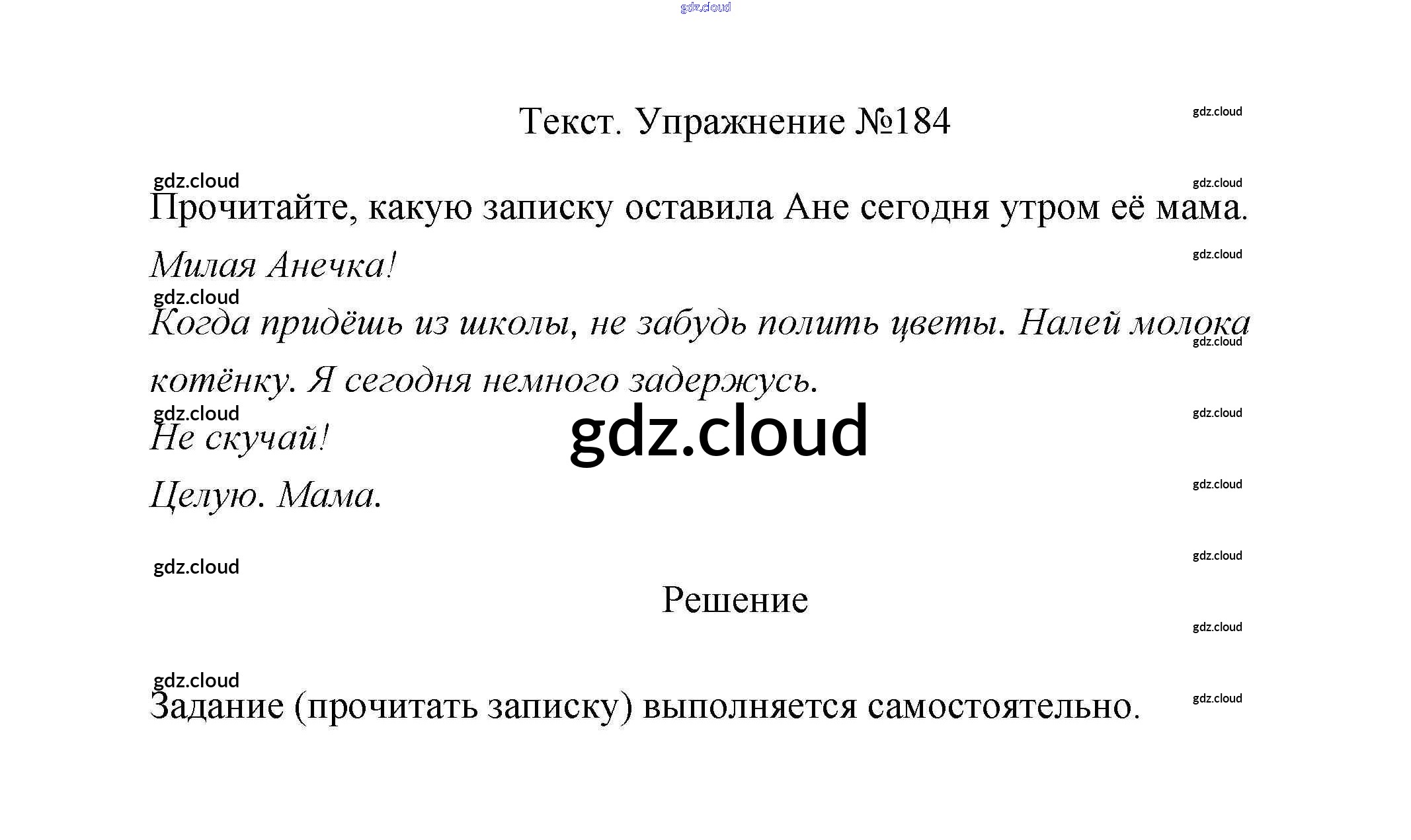 Ответ на задание 184 Учебник Русский язык за 2 (второй) класс Климанова, Бабушкина Перспектива 2015, 2020 Часть 1, 2