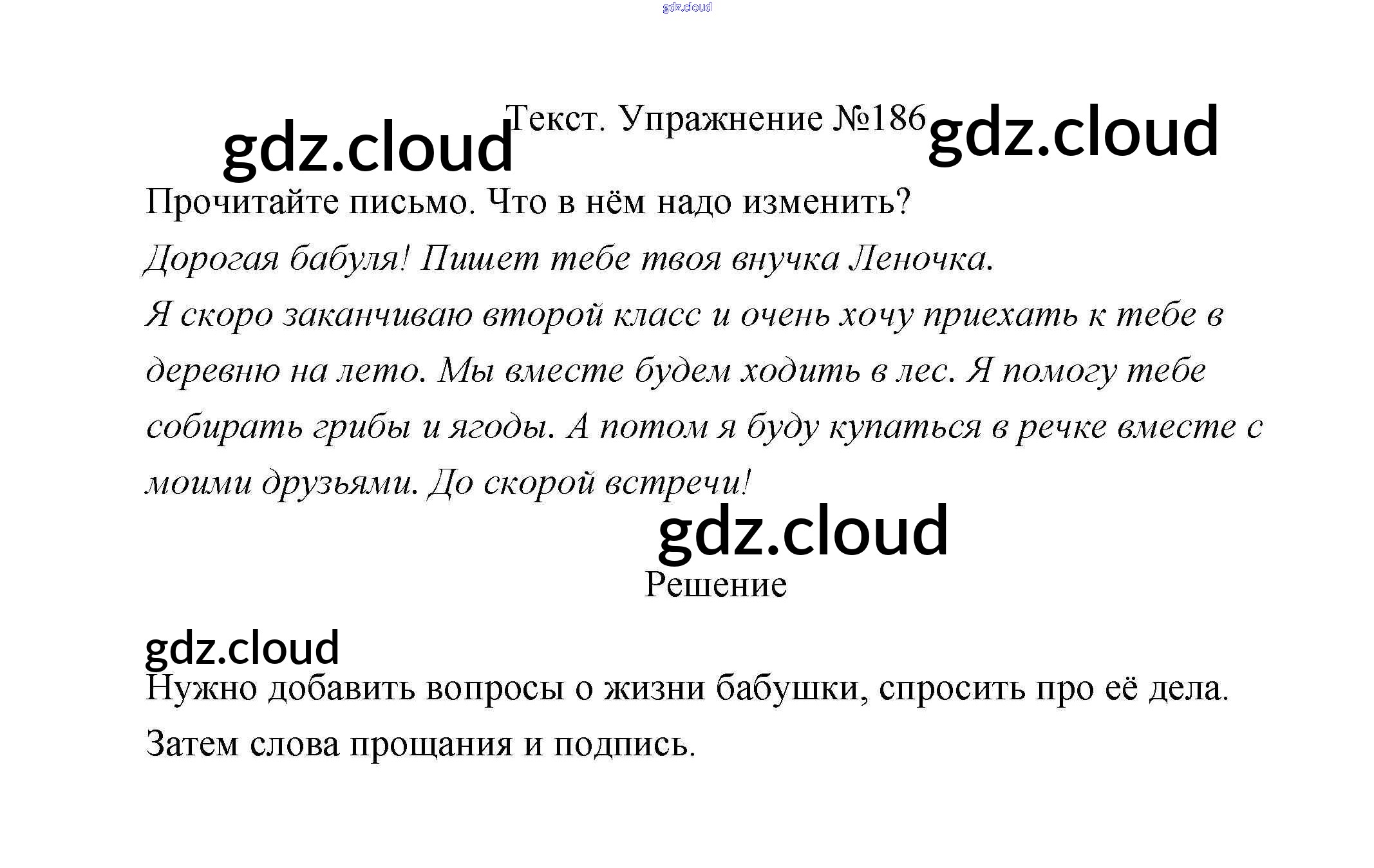 Ответ на задание 186 Учебник Русский язык за 2 (второй) класс Климанова, Бабушкина Перспектива 2015, 2020 Часть 1, 2