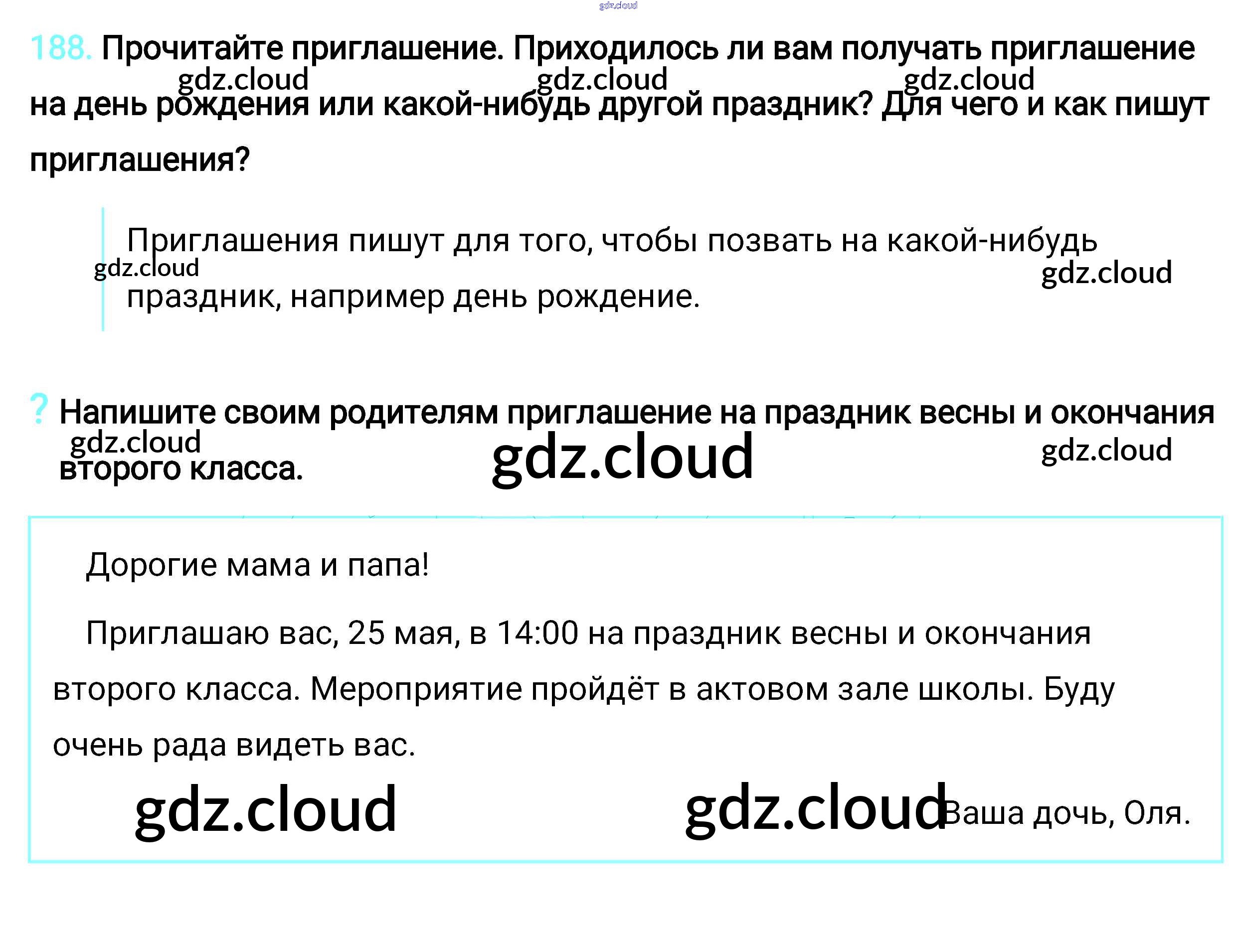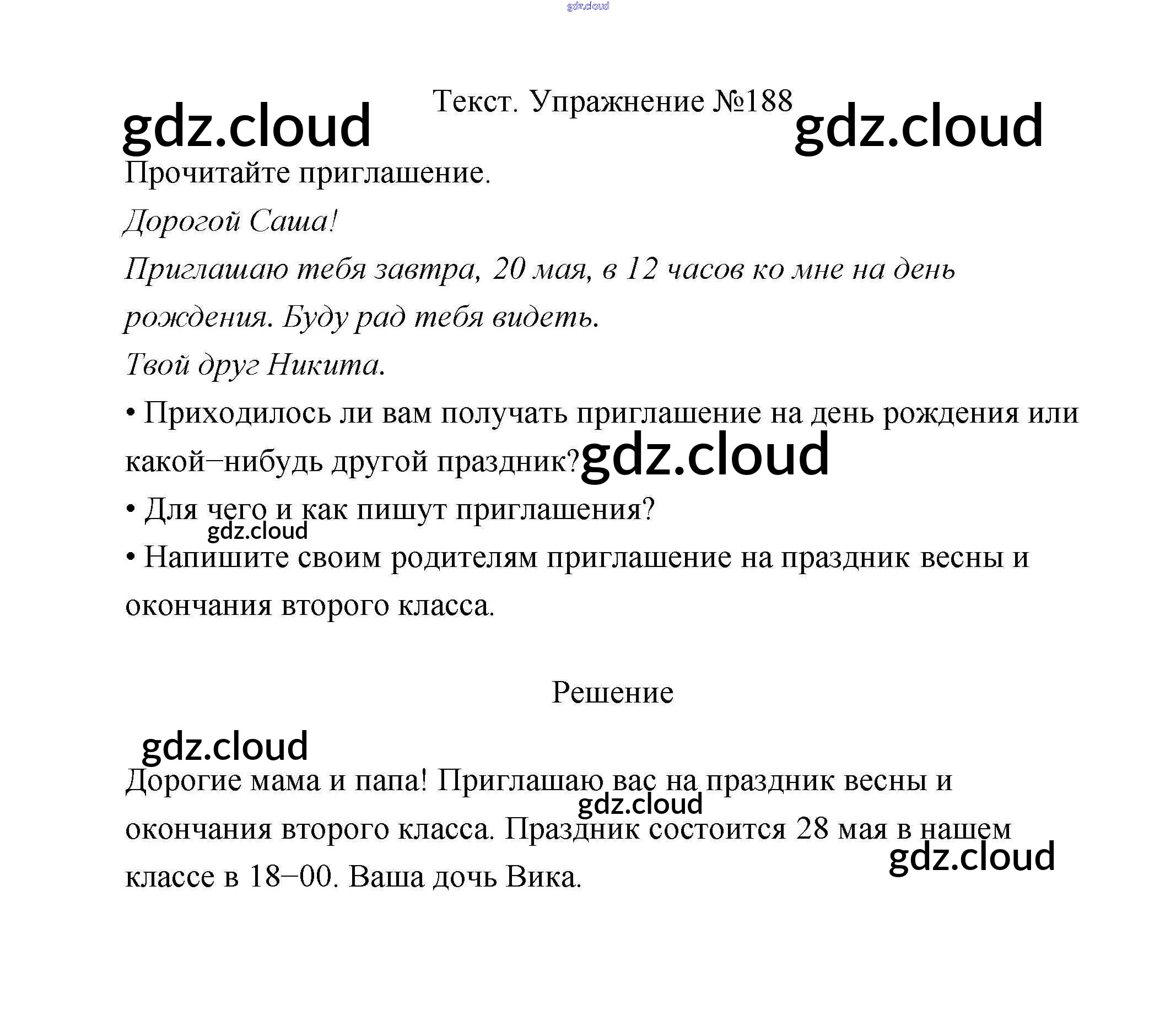 Ответ на задание 188 Учебник Русский язык за 2 (второй) класс Климанова, Бабушкина Перспектива 2015, 2020 Часть 1, 2