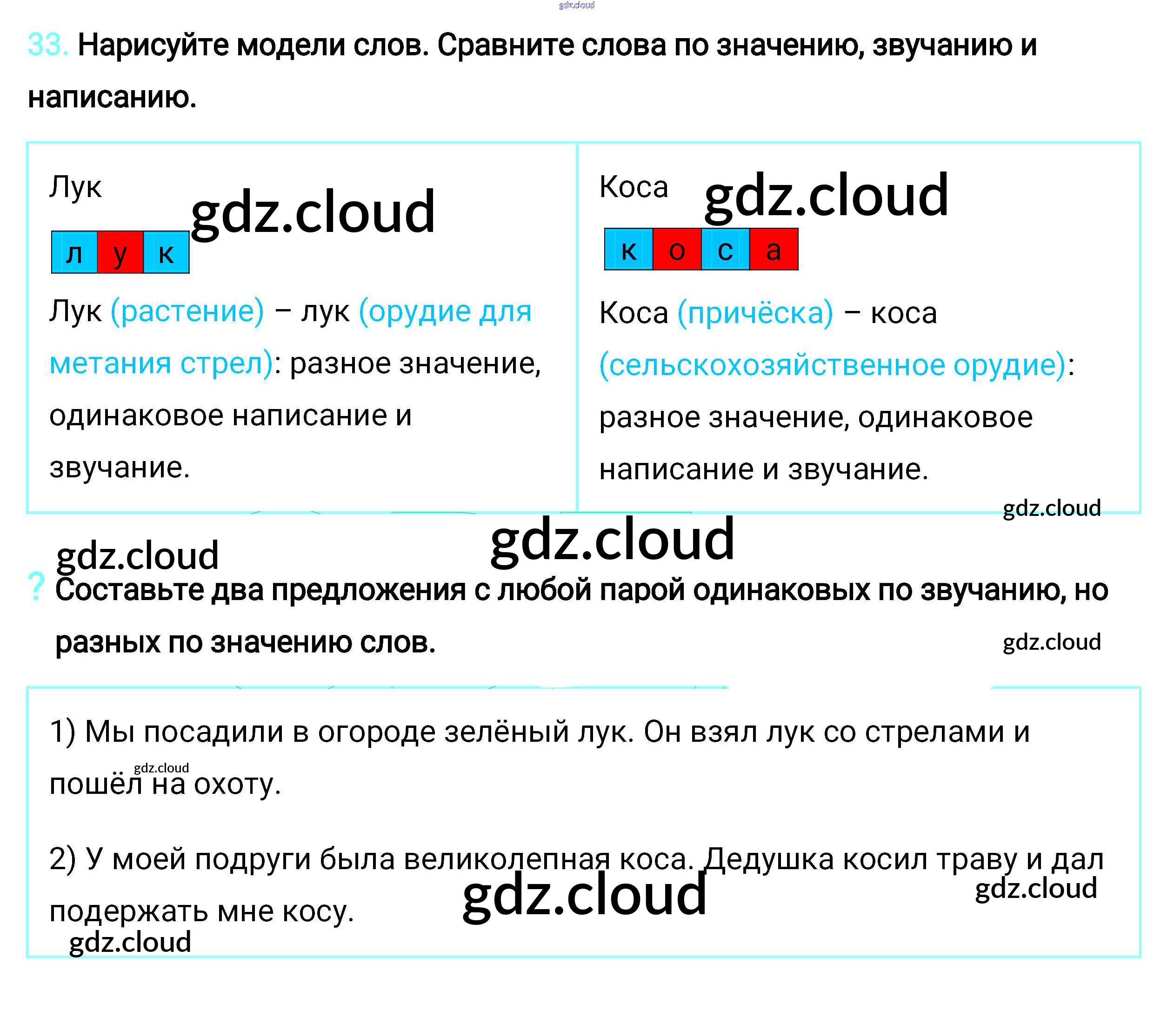 Ответ на задание 33 Учебник Русский язык за 2 (второй) класс Климанова, Бабушкина Перспектива 2015, 2020 Часть 1, 2