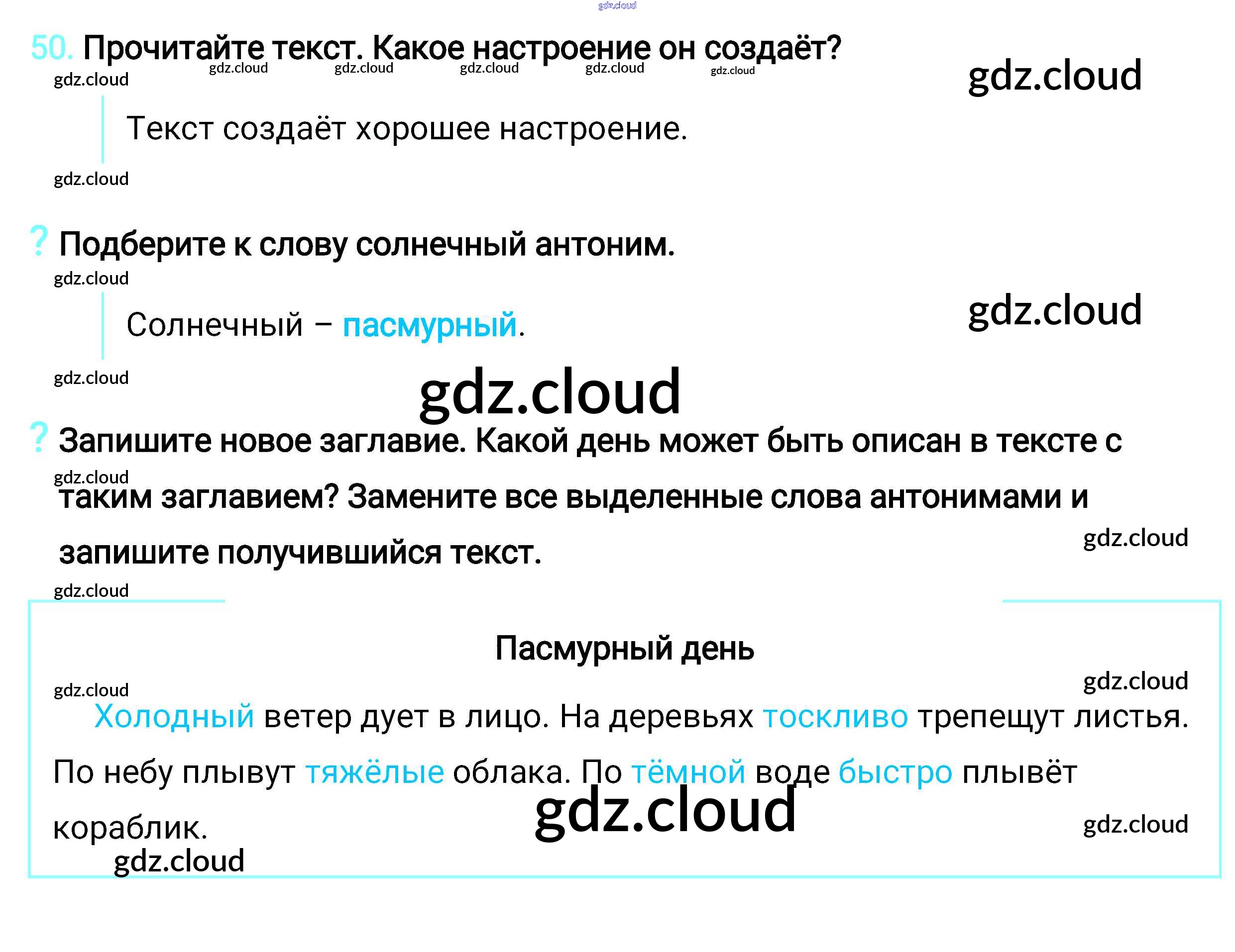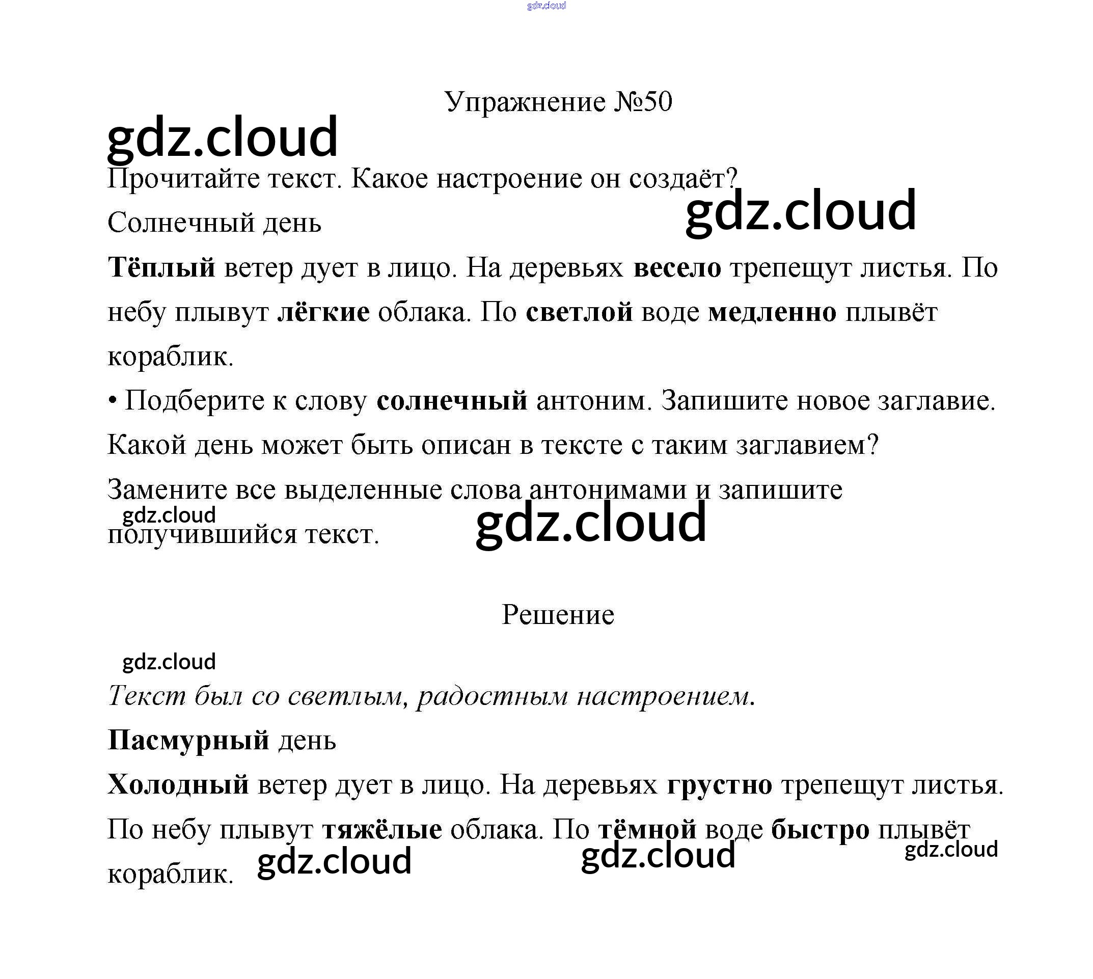 Ответ на задание 50 Учебник Русский язык за 2 (второй) класс Климанова, Бабушкина Перспектива 2015, 2020 Часть 1, 2