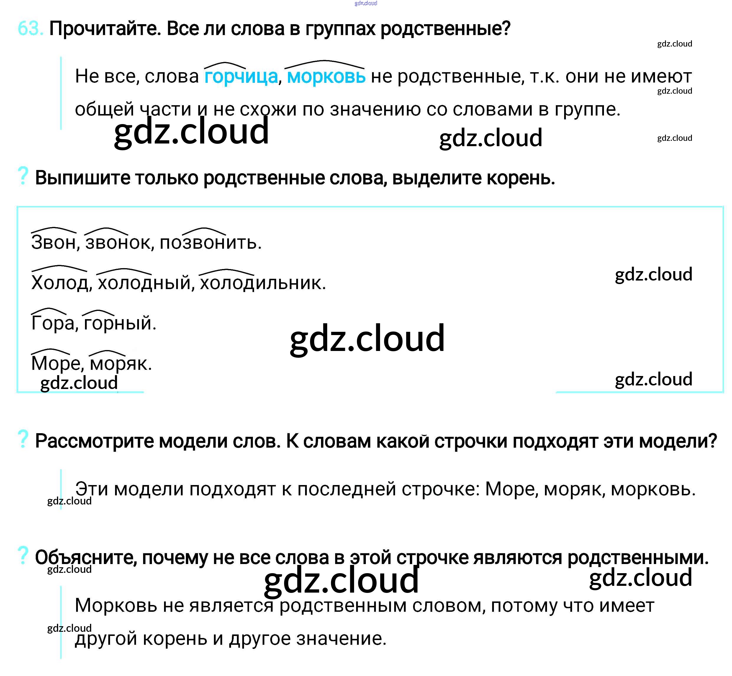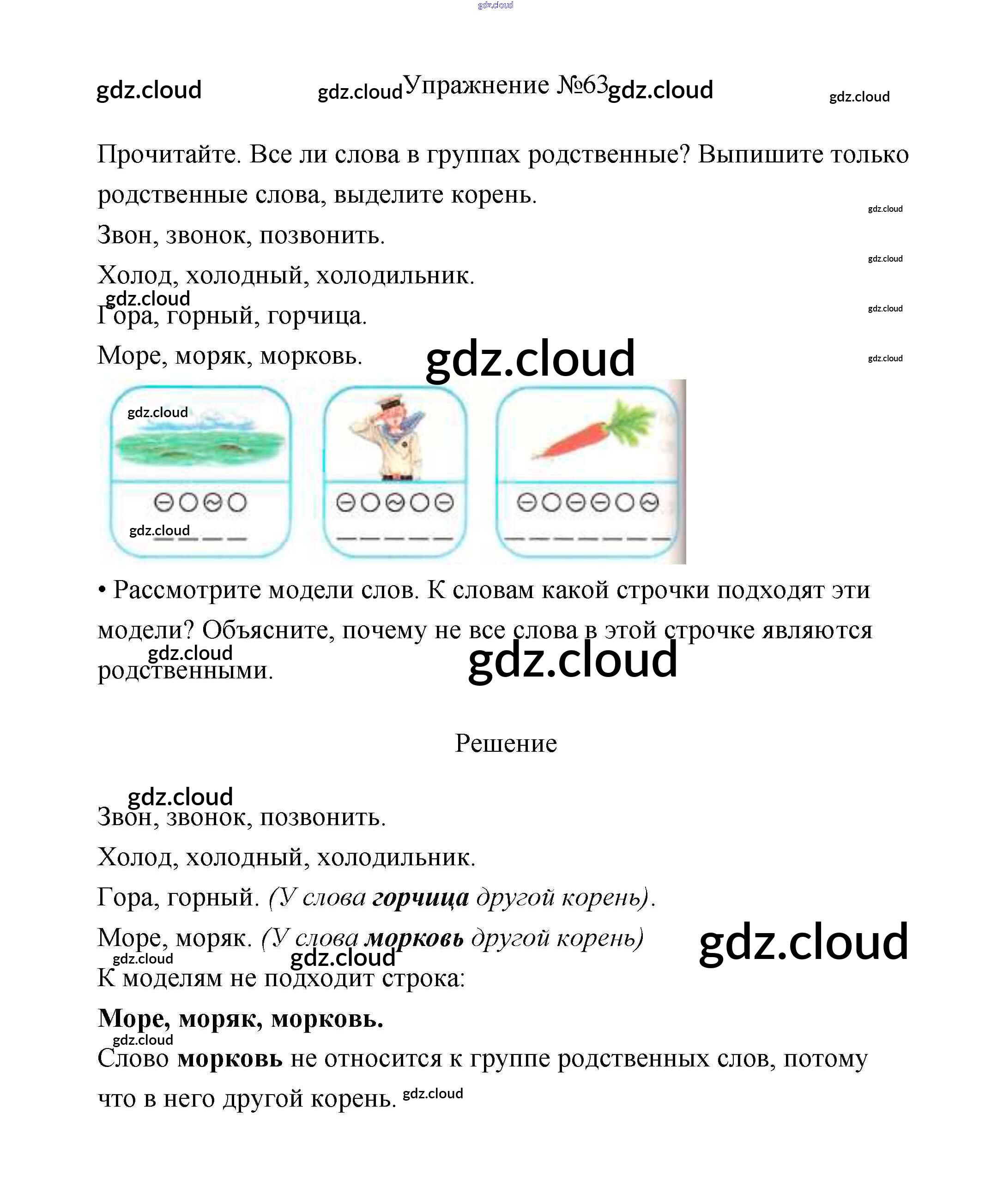 Ответ на задание 63 Учебник Русский язык за 2 (второй) класс Климанова, Бабушкина Перспектива 2015, 2020 Часть 1, 2