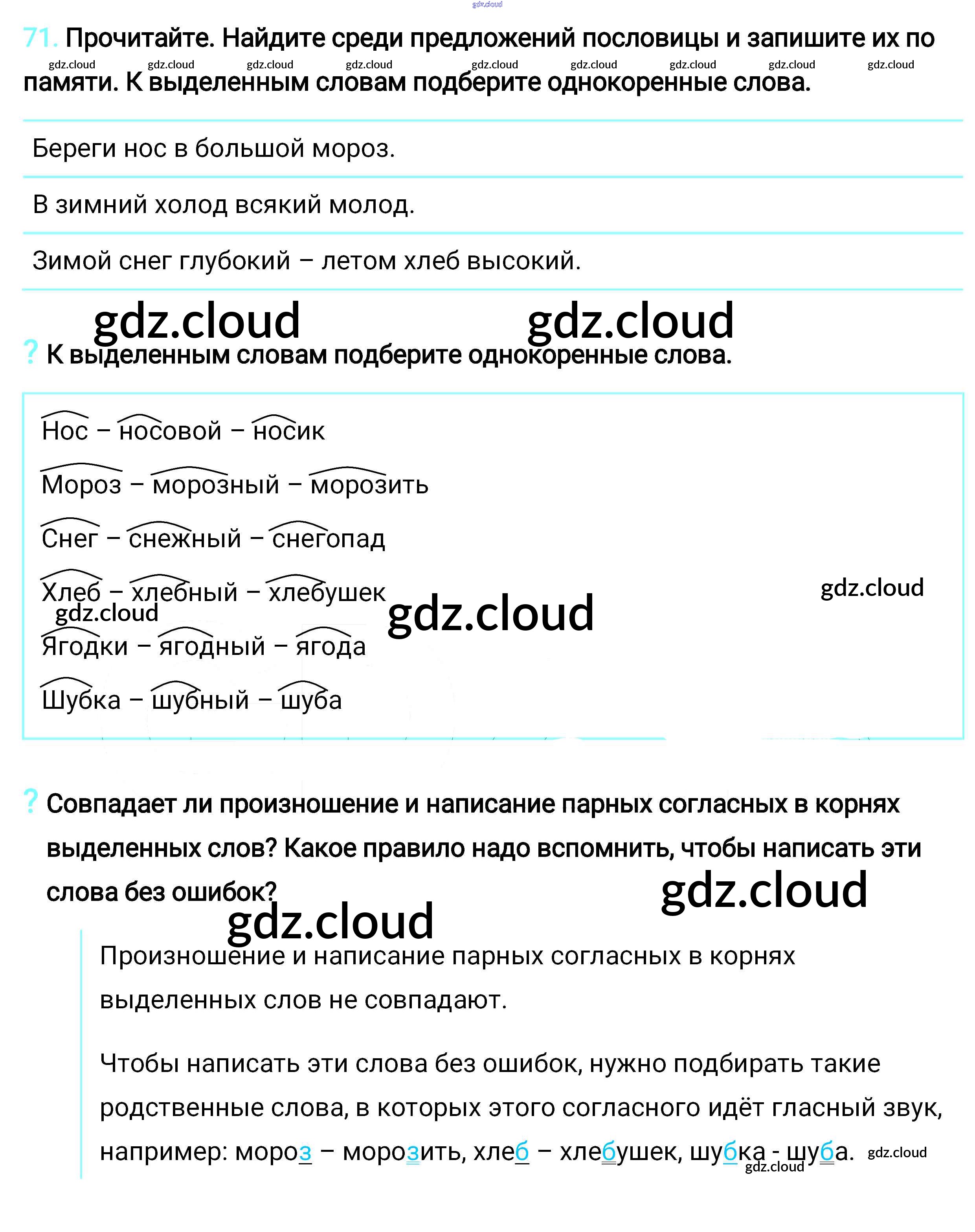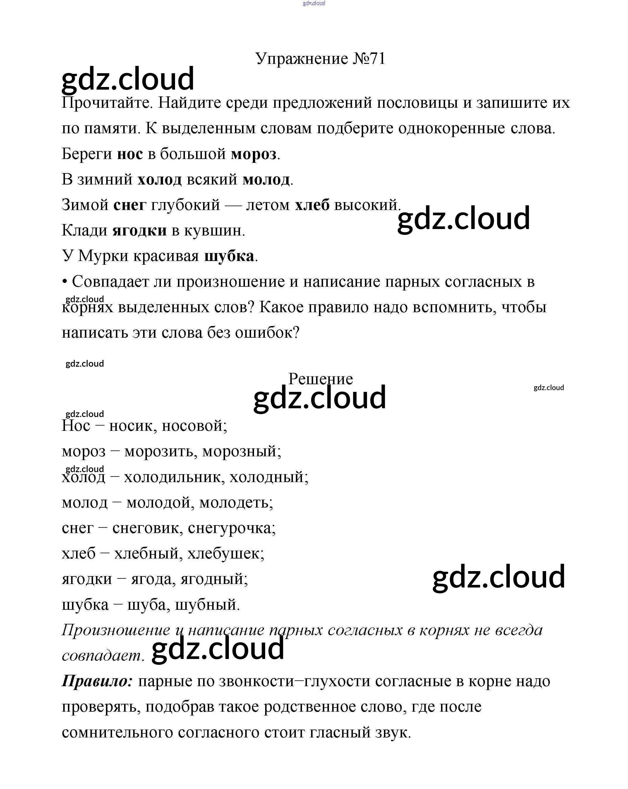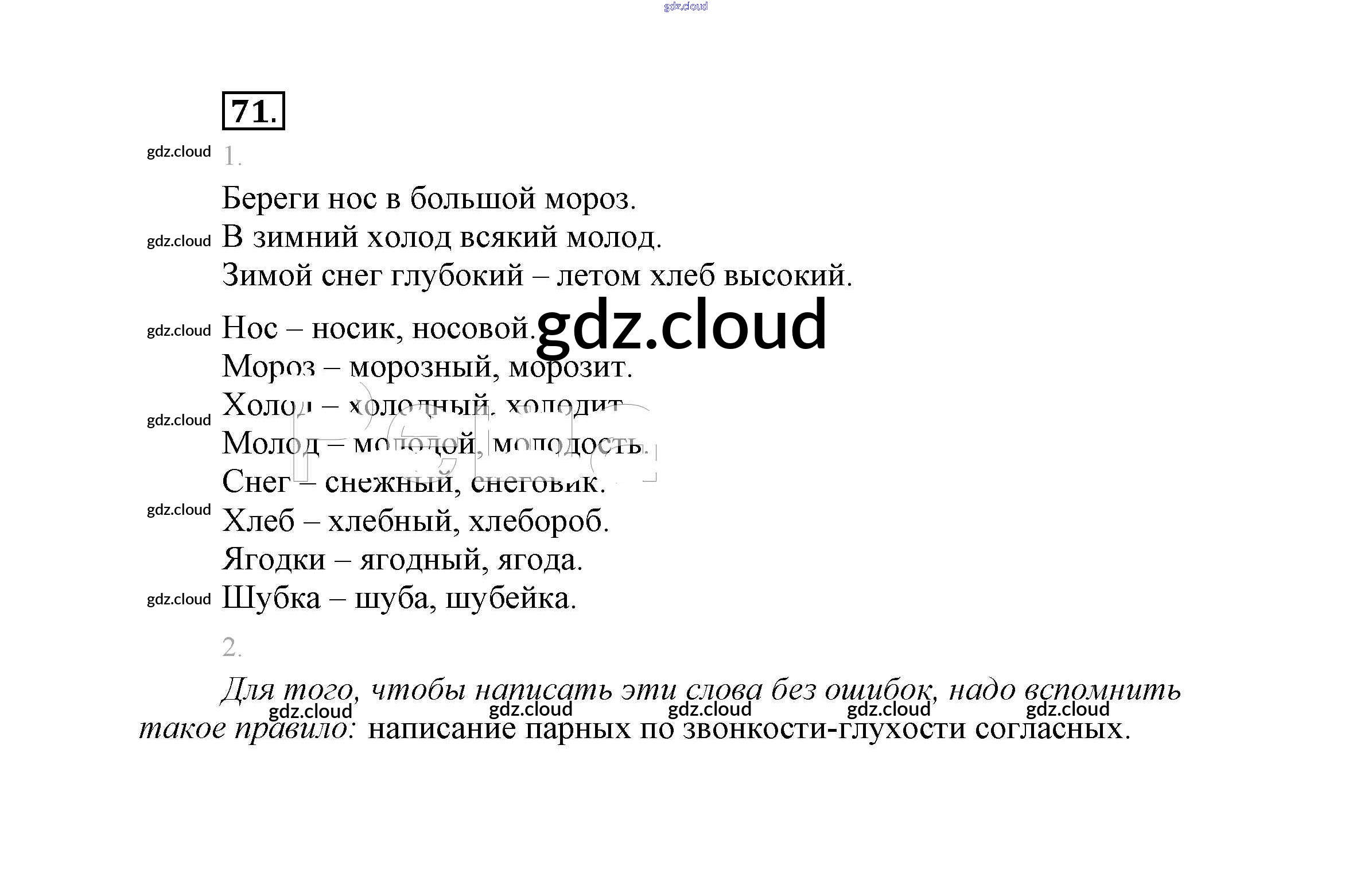 Ответ на задание 71 Учебник Русский язык за 2 (второй) класс Климанова, Бабушкина Перспектива 2015, 2020 Часть 1, 2