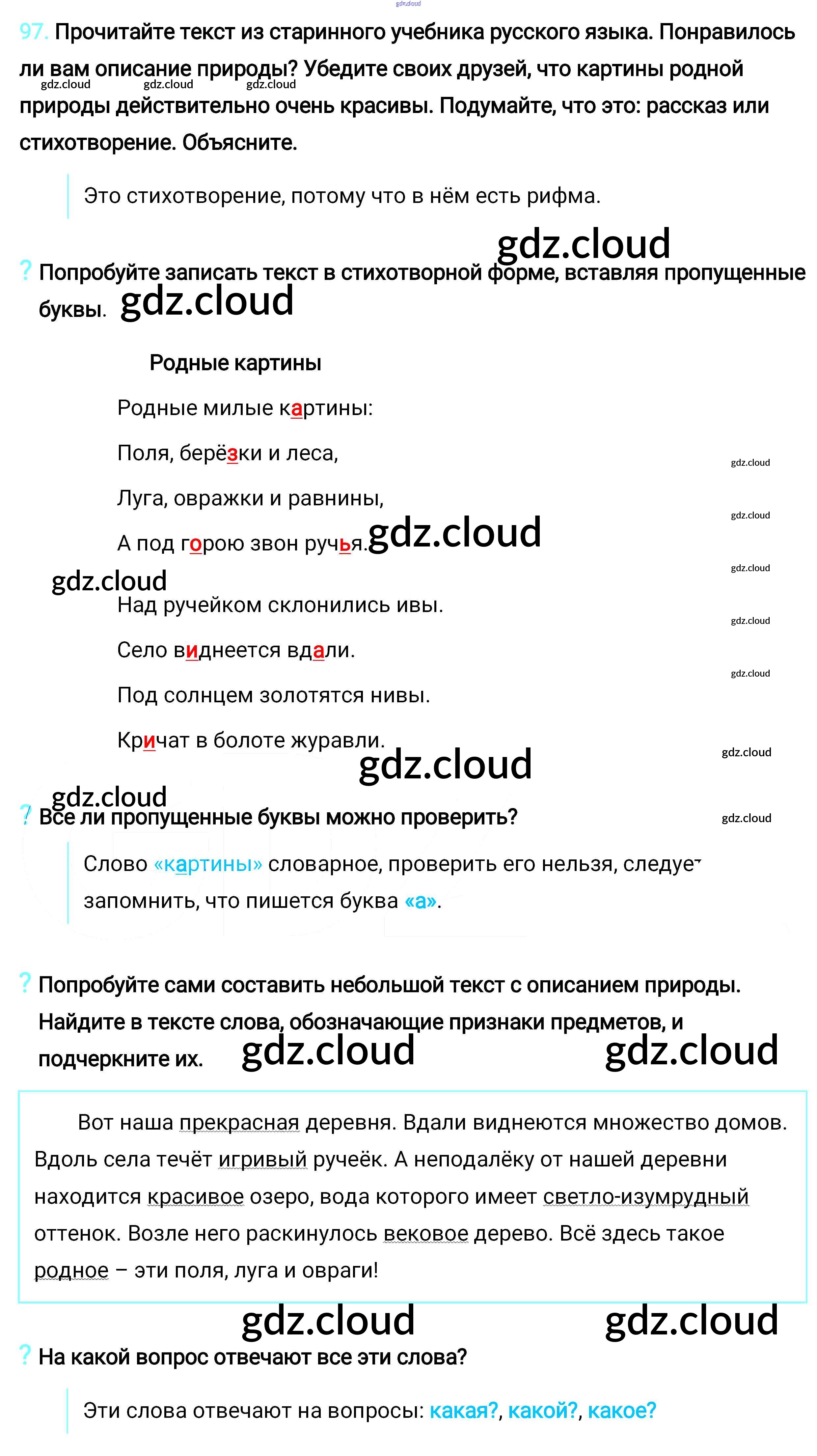Ответ на задание 97 Учебник Русский язык за 2 (второй) класс Климанова, Бабушкина Перспектива 2015, 2020 Часть 1, 2