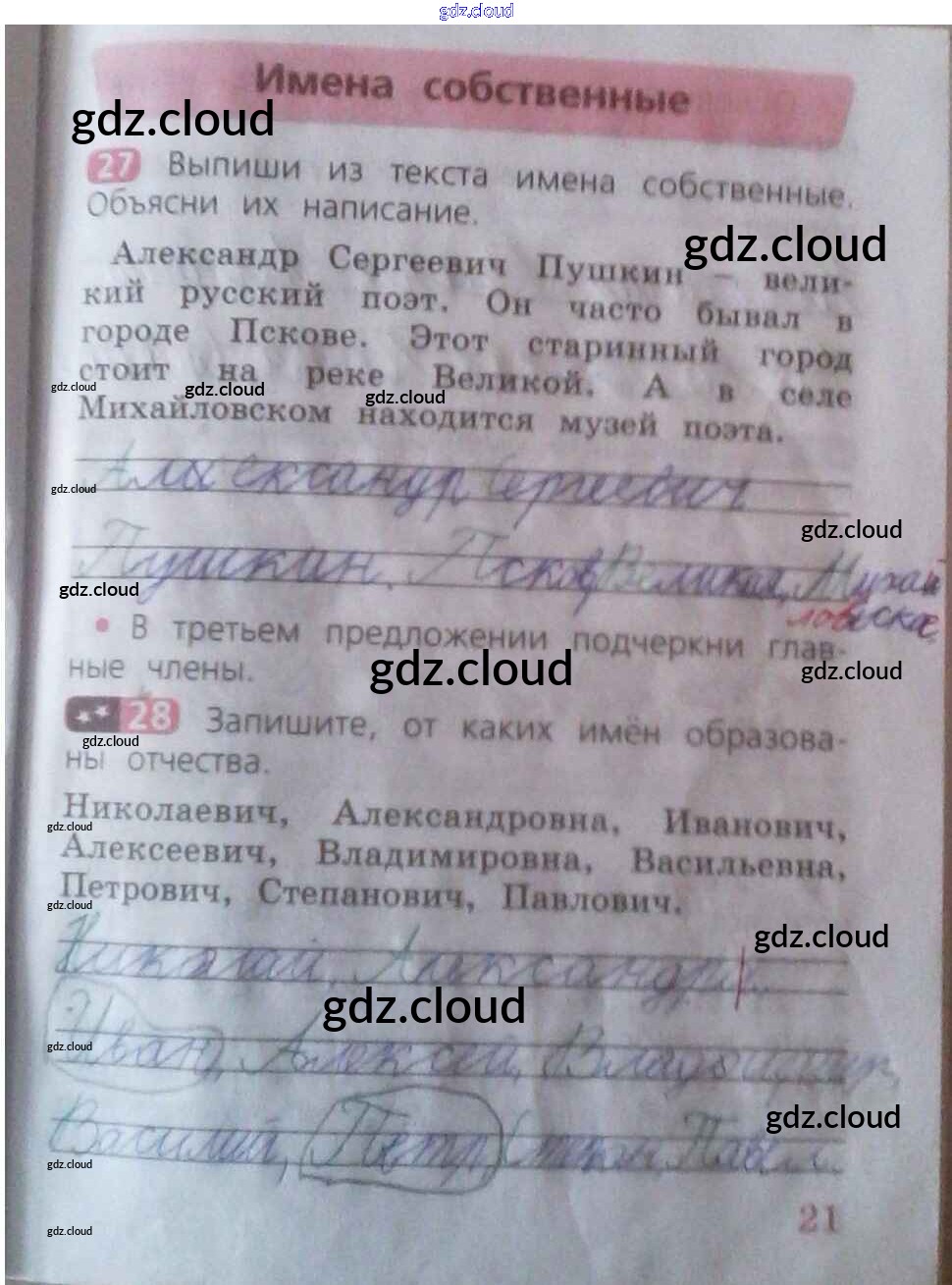 Ответ на задание 21 Рабочая тетрадь Русский язык за 2 (второй) класс Песняева, Анащенкова 2020 Часть 1, 2