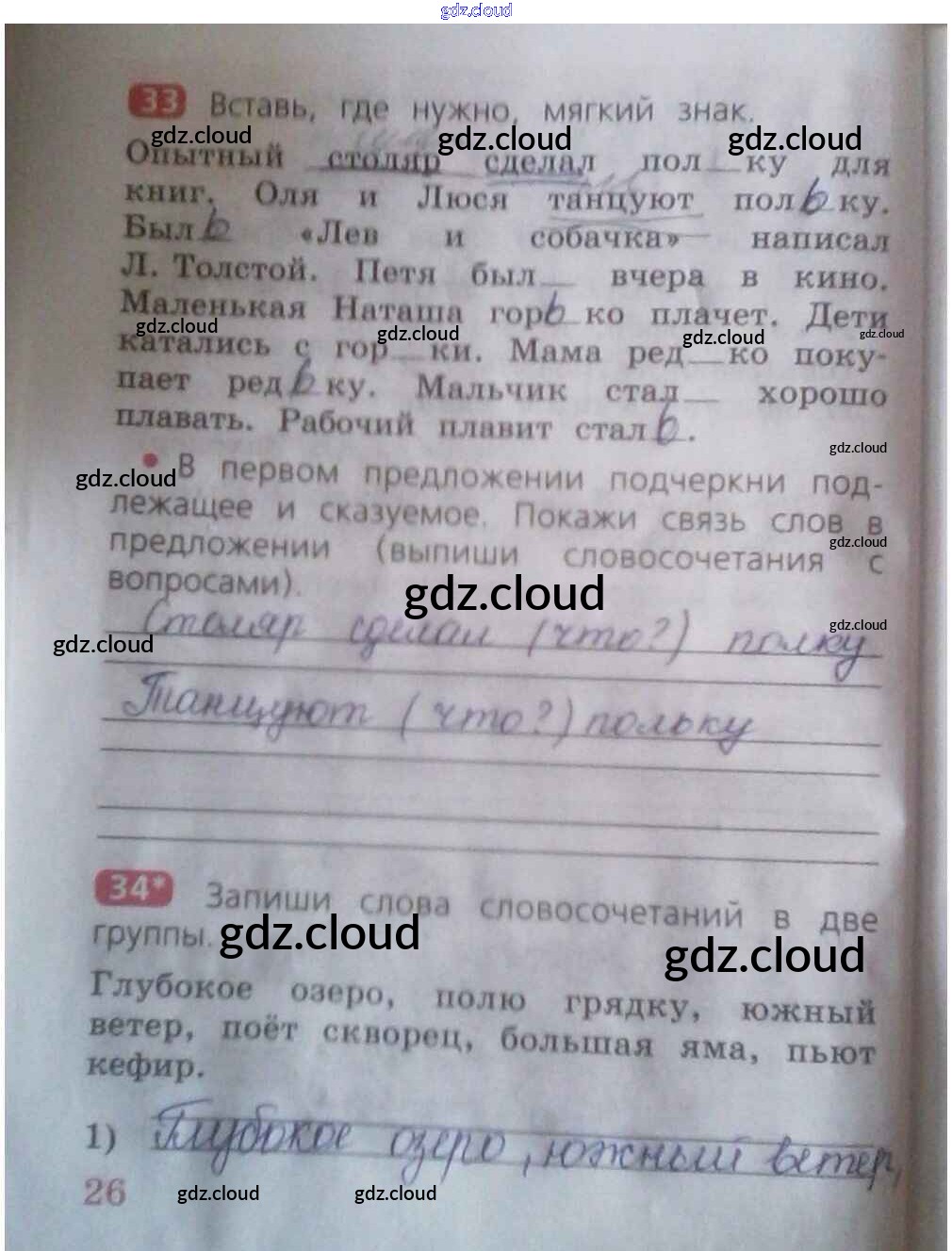 Ответ на задание 26 Рабочая тетрадь Русский язык за 2 (второй) класс Песняева, Анащенкова 2020 Часть 1, 2