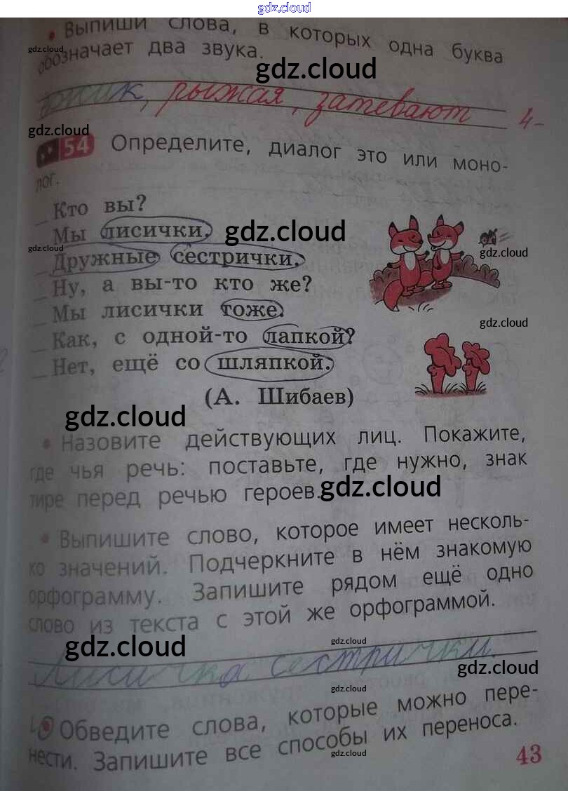 Ответ на задание 43 Рабочая тетрадь Русский язык за 2 (второй) класс Песняева, Анащенкова 2020 Часть 1, 2