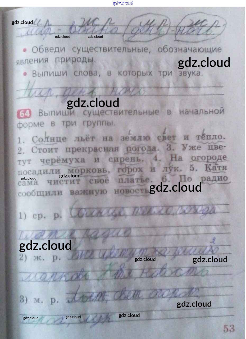 Ответ на задание 53 Рабочая тетрадь Русский язык за 2 (второй) класс Песняева, Анащенкова 2020 Часть 1, 2