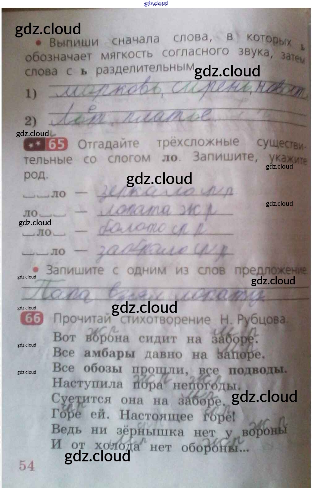 Ответ на задание 54 Рабочая тетрадь Русский язык за 2 (второй) класс Песняева, Анащенкова 2020 Часть 1, 2