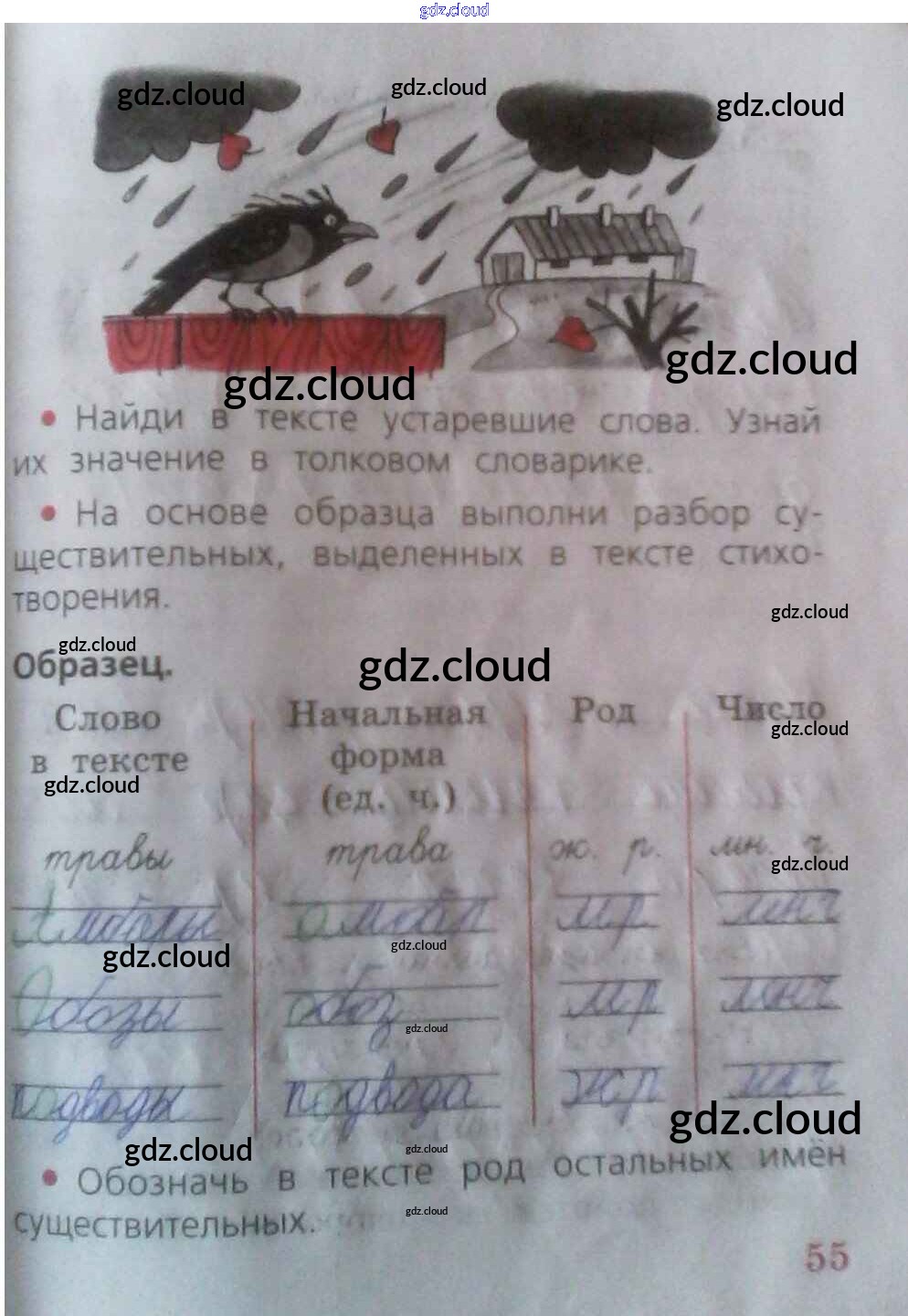 Ответ на задание 55 Рабочая тетрадь Русский язык за 2 (второй) класс Песняева, Анащенкова 2020 Часть 1, 2