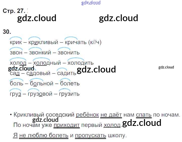Ответ на задание 27 Рабочая тетрадь Русский язык за 2 (второй) класс Песняева, Анащенкова 2020 Часть 1, 2