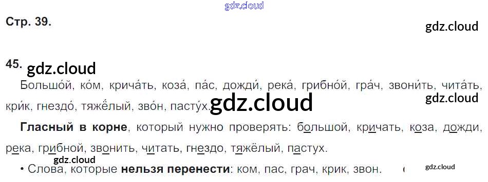 Ответ на задание 39 Рабочая тетрадь Русский язык за 2 (второй) класс Песняева, Анащенкова 2020 Часть 1, 2