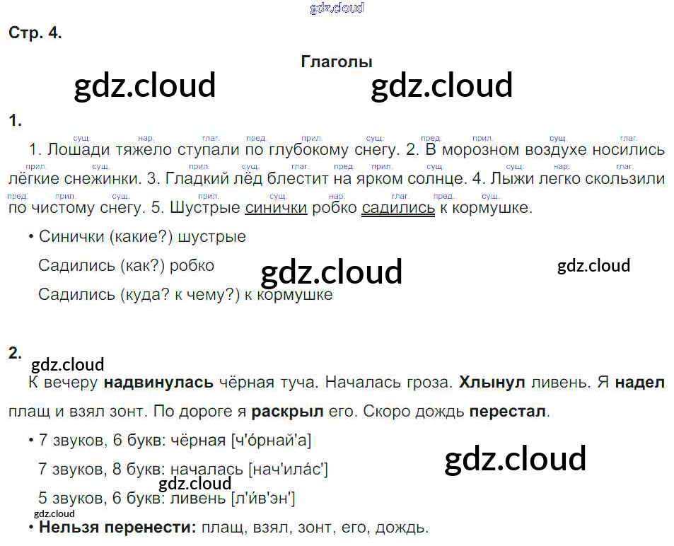 Ответ на задание 4 Рабочая тетрадь Русский язык за 2 (второй) класс Песняева, Анащенкова 2020 Часть 1, 2