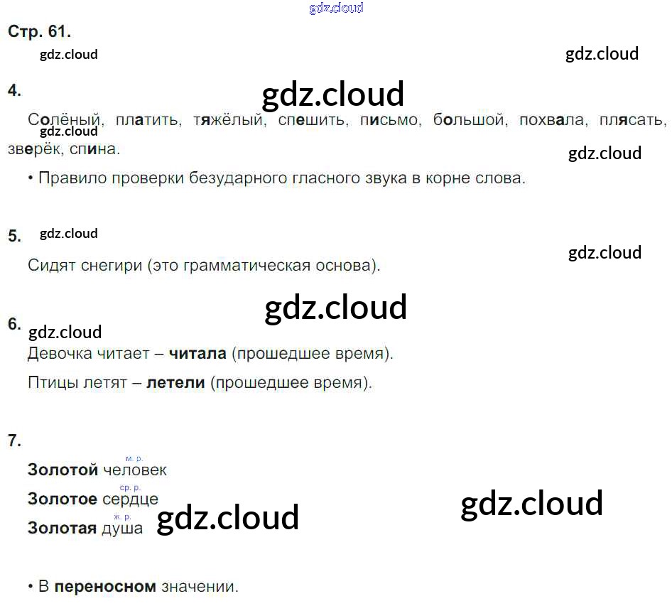 Ответ на задание 61 Рабочая тетрадь Русский язык за 2 (второй) класс Песняева, Анащенкова 2020 Часть 1, 2