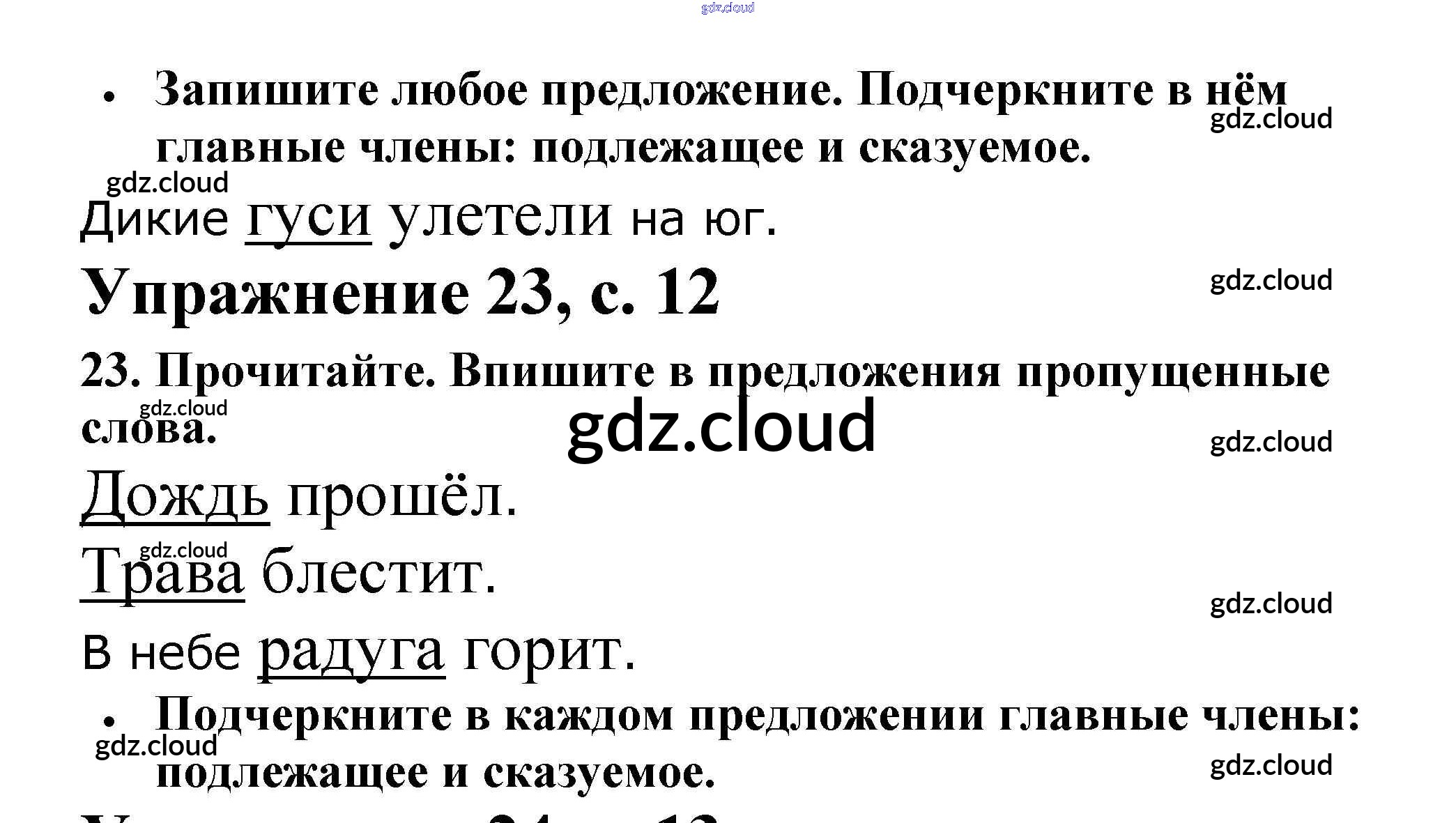 Ответ на задание 12 Рабочая тетрадь Русский язык за 2 (второй) класс Канакина Школа России 2012 Часть 1, 2