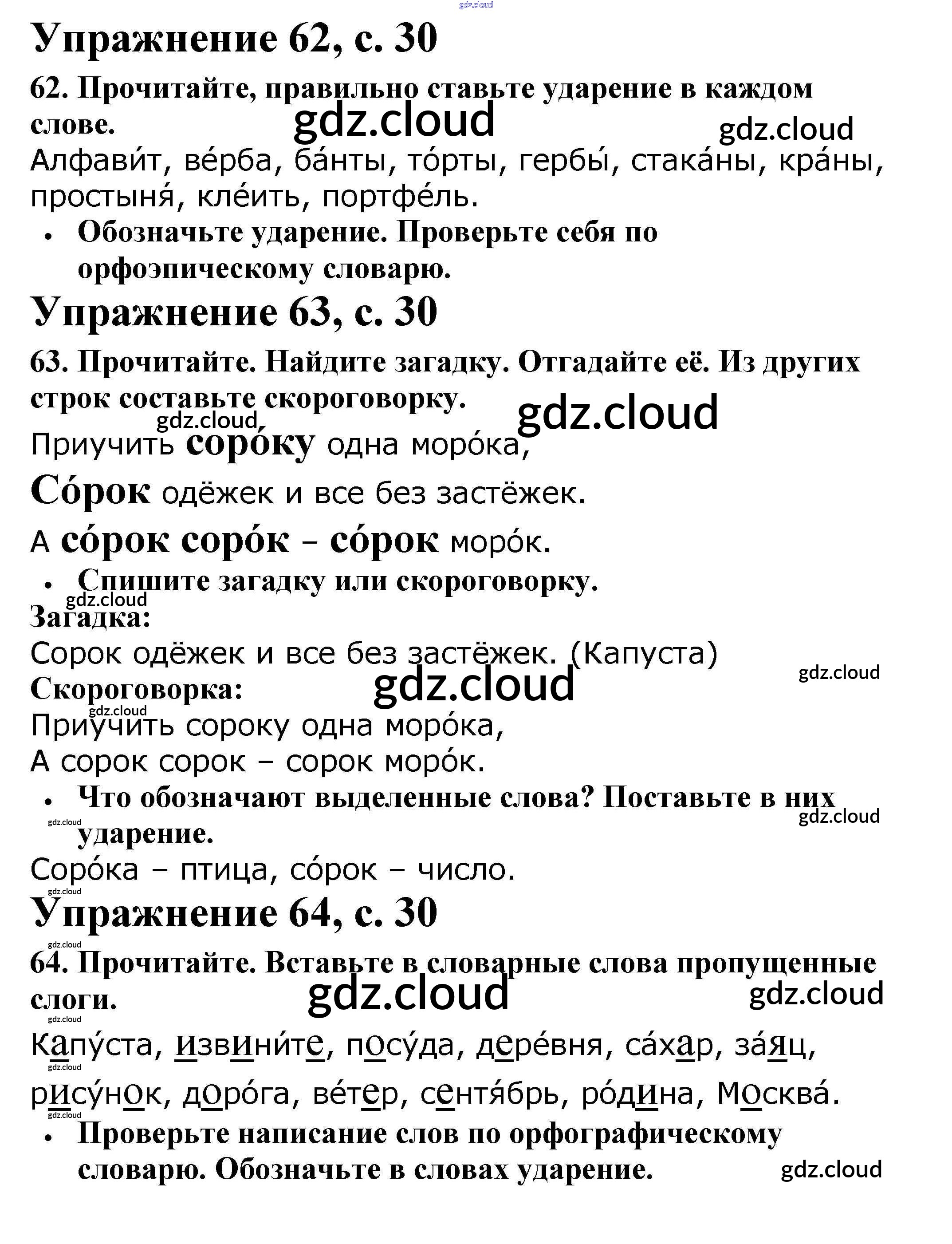 Ответ на задание 30 Рабочая тетрадь Русский язык за 2 (второй) класс Канакина Школа России 2012 Часть 1, 2