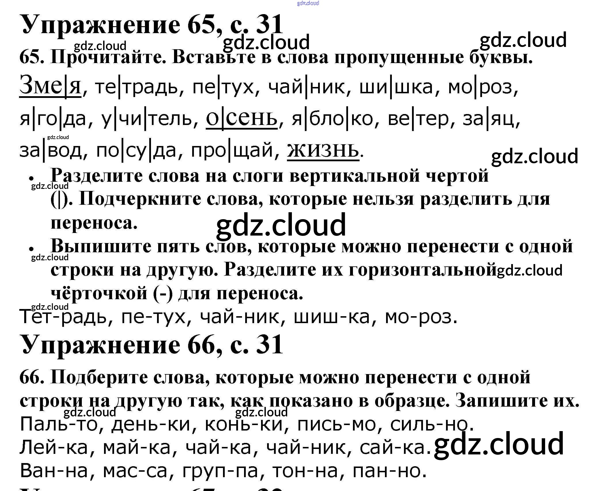 Ответ на задание 31 Рабочая тетрадь Русский язык за 2 (второй) класс Канакина Школа России 2012 Часть 1, 2