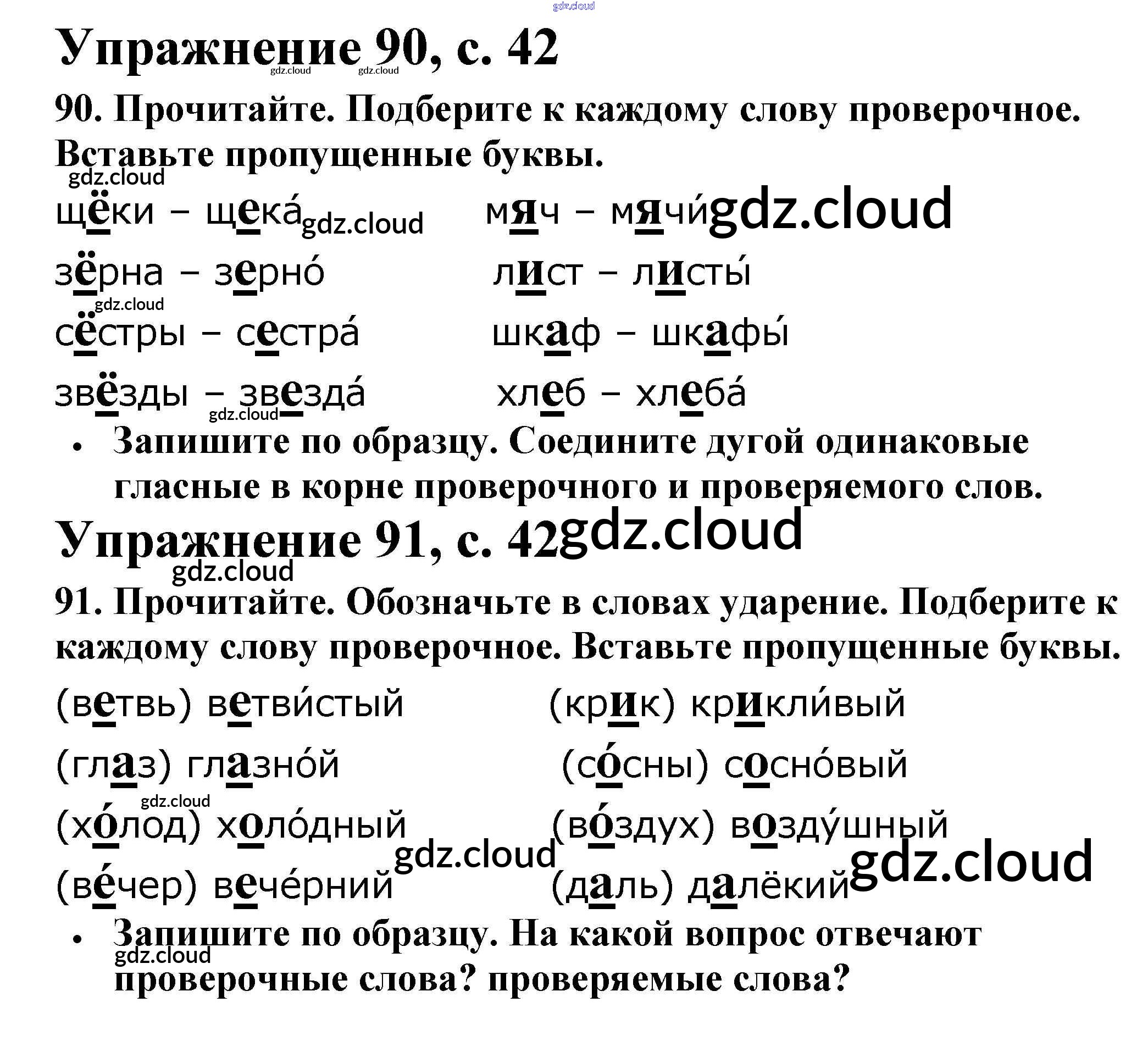Ответ на задание 42 Рабочая тетрадь Русский язык за 2 (второй) класс Канакина Школа России 2012 Часть 1, 2