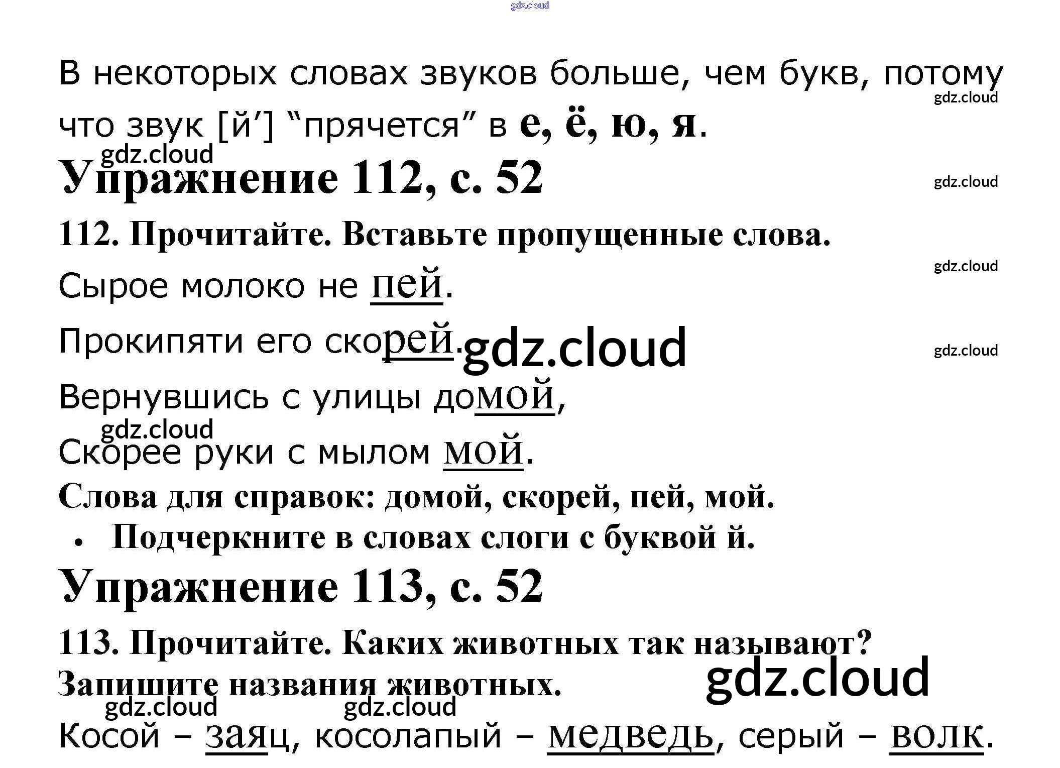 Ответ на задание 52 Рабочая тетрадь Русский язык за 2 (второй) класс Канакина Школа России 2012 Часть 1, 2