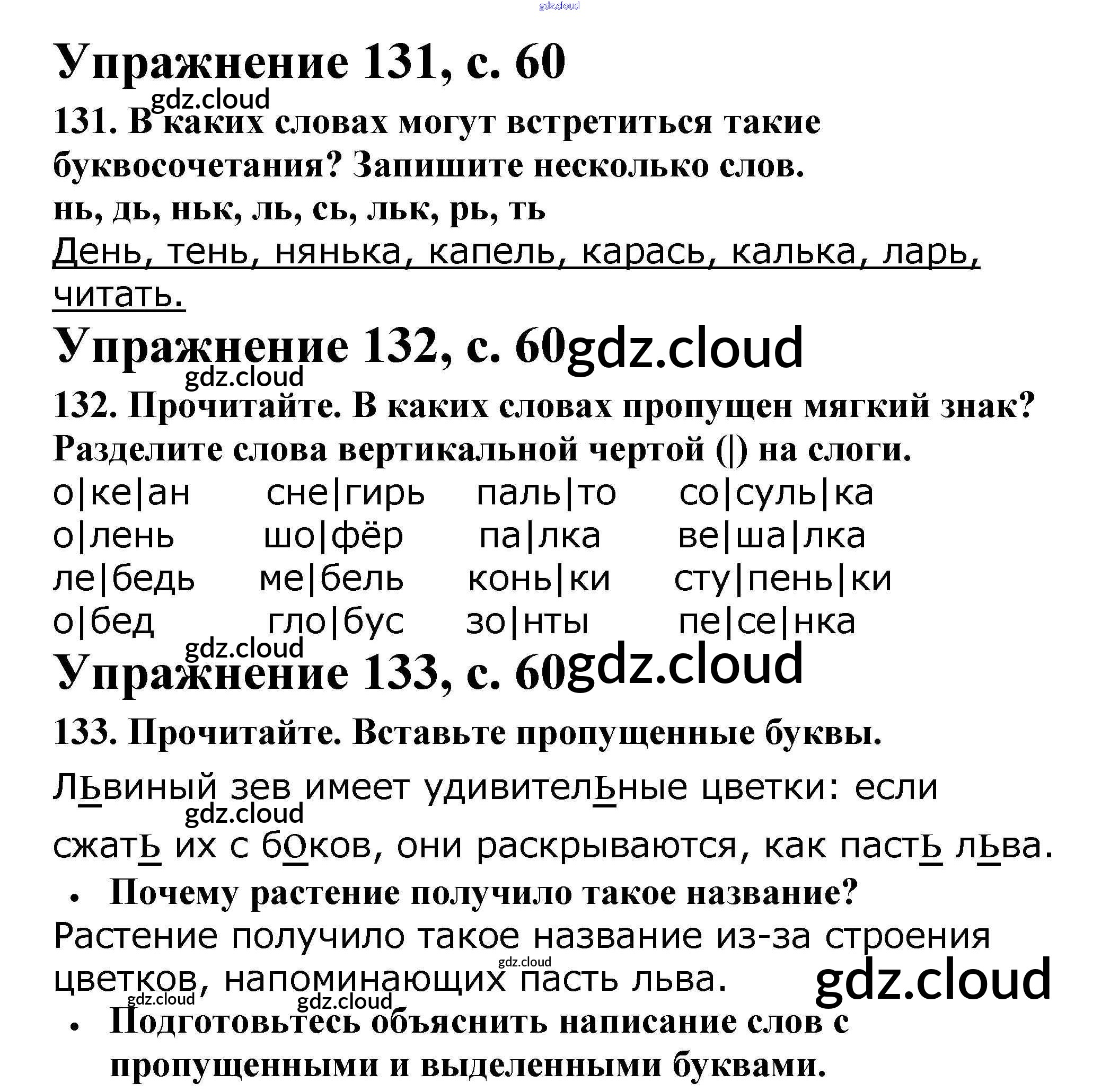 Ответ на задание 60 Рабочая тетрадь Русский язык за 2 (второй) класс Канакина Школа России 2012 Часть 1, 2