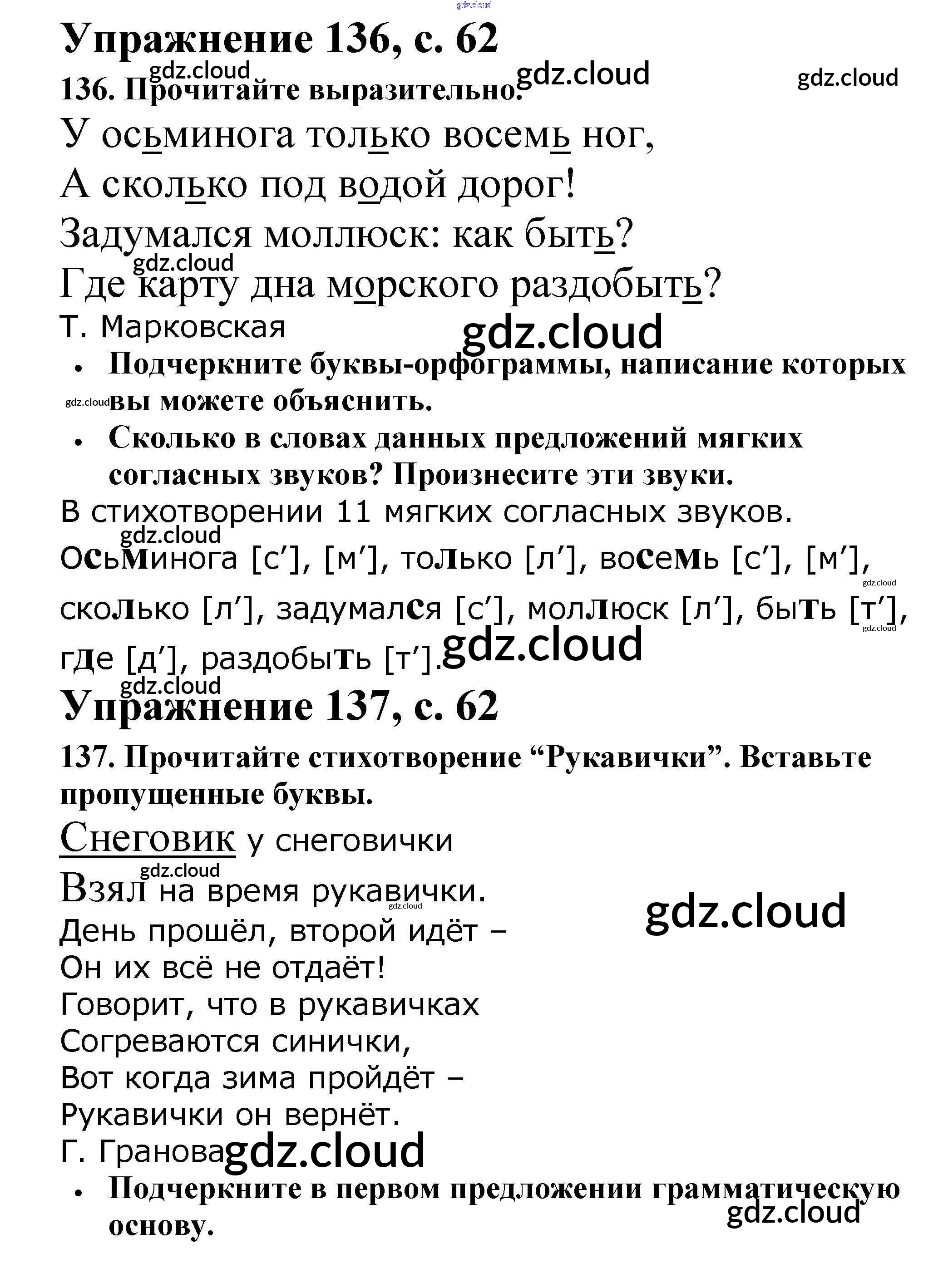 Ответ на задание 62 Рабочая тетрадь Русский язык за 2 (второй) класс Канакина Школа России 2012 Часть 1, 2