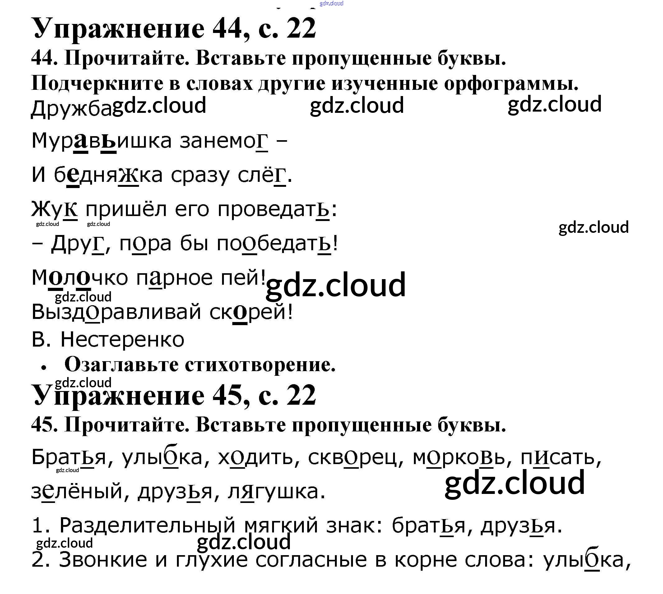 Ответ на задание 22 Рабочая тетрадь Русский язык за 2 (второй) класс Канакина Школа России 2012 Часть 1, 2