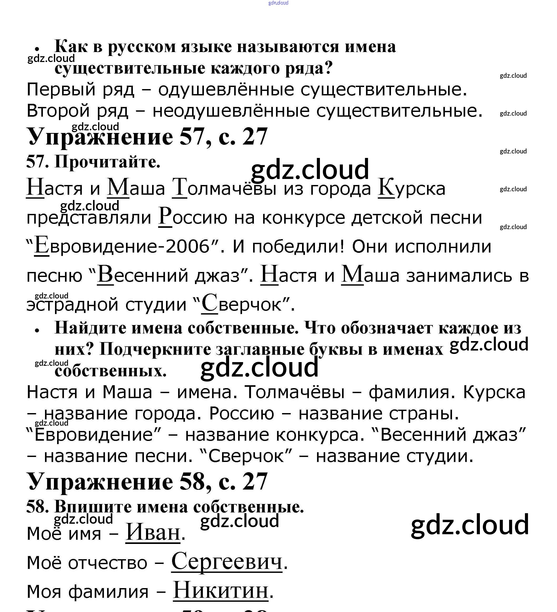 Ответ на задание 27 Рабочая тетрадь Русский язык за 2 (второй) класс Канакина Школа России 2012 Часть 1, 2
