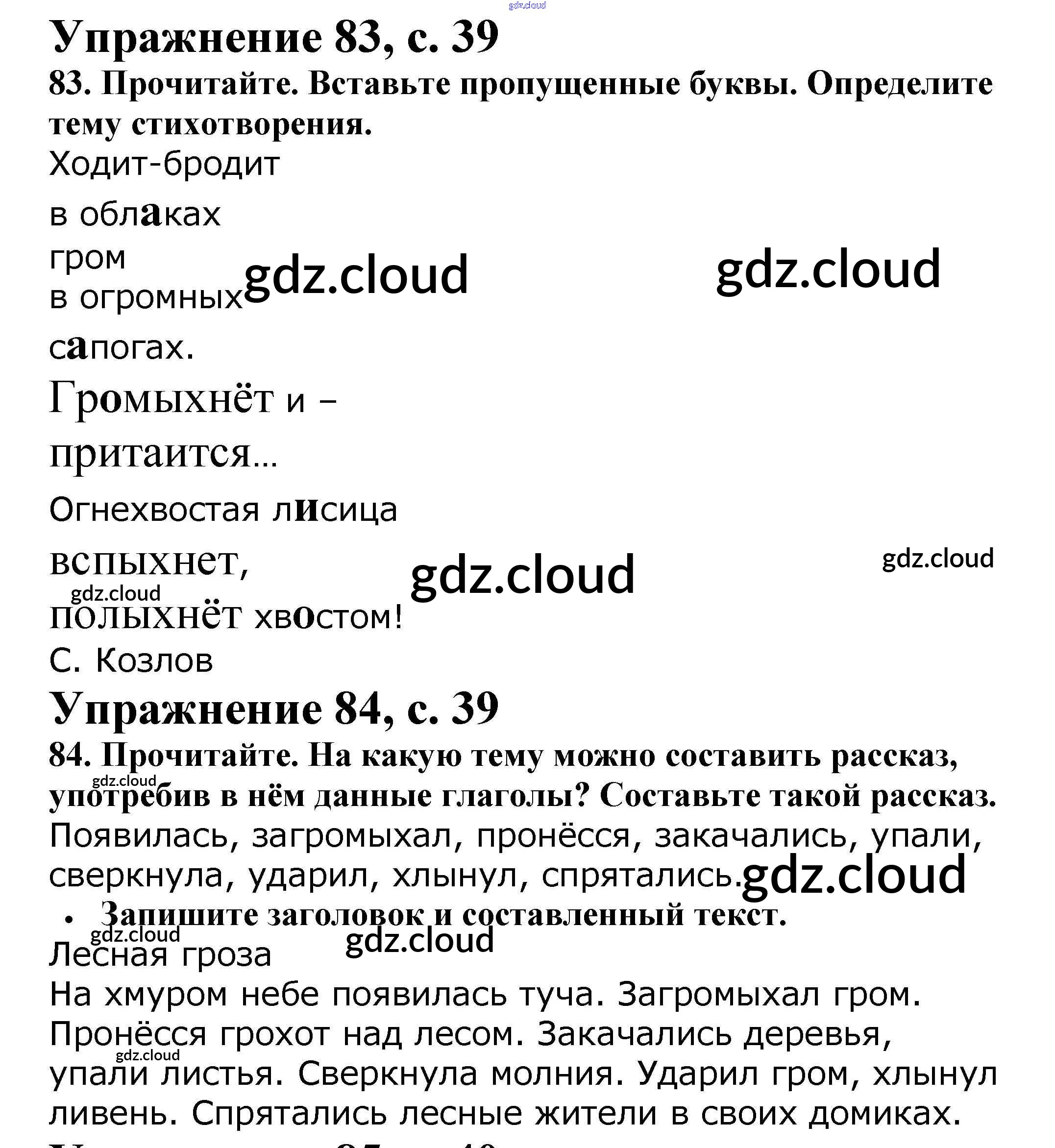 Ответ на задание 39 Рабочая тетрадь Русский язык за 2 (второй) класс Канакина Школа России 2012 Часть 1, 2