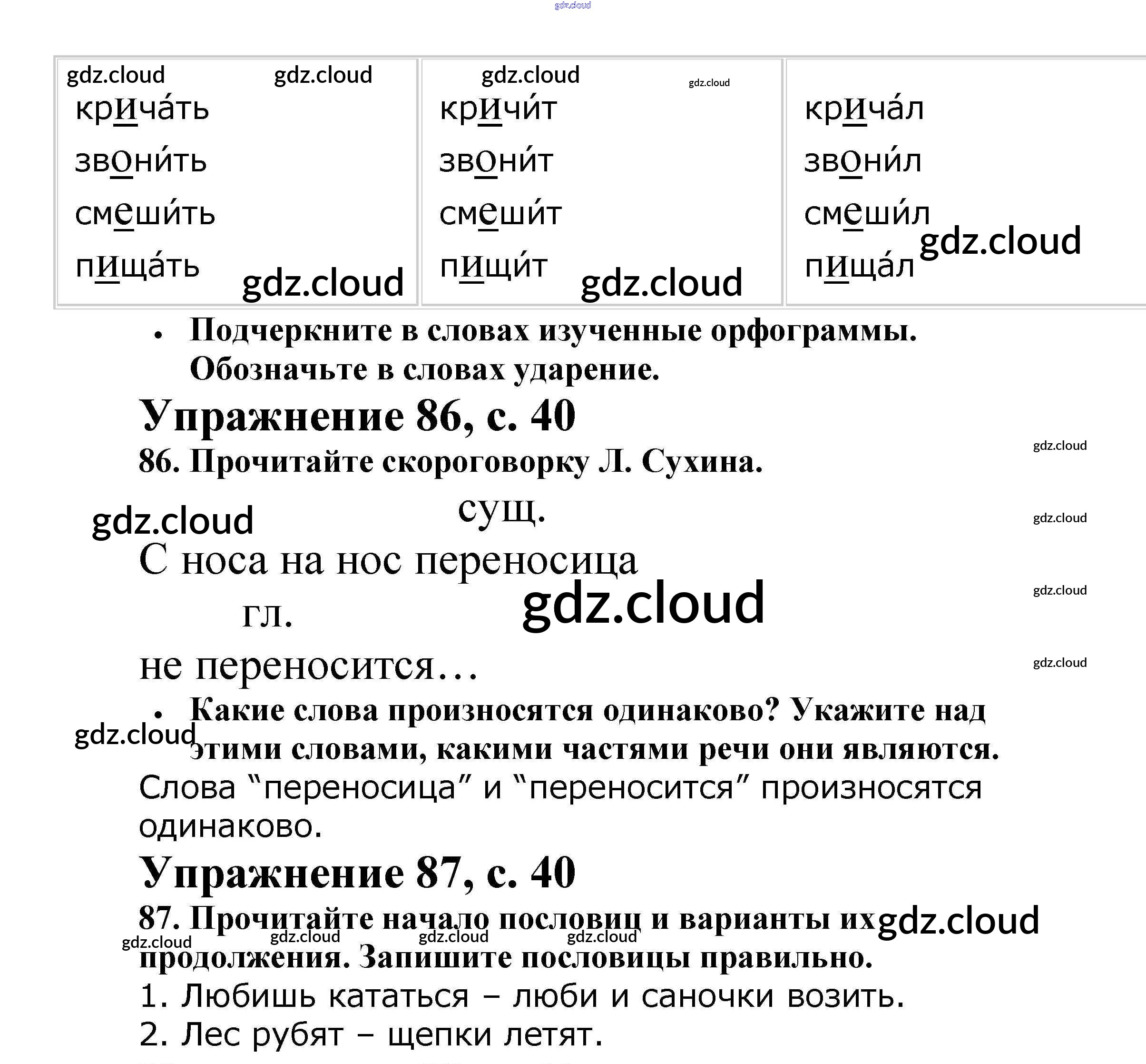 Ответ на задание 40 Рабочая тетрадь Русский язык за 2 (второй) класс Канакина Школа России 2012 Часть 1, 2