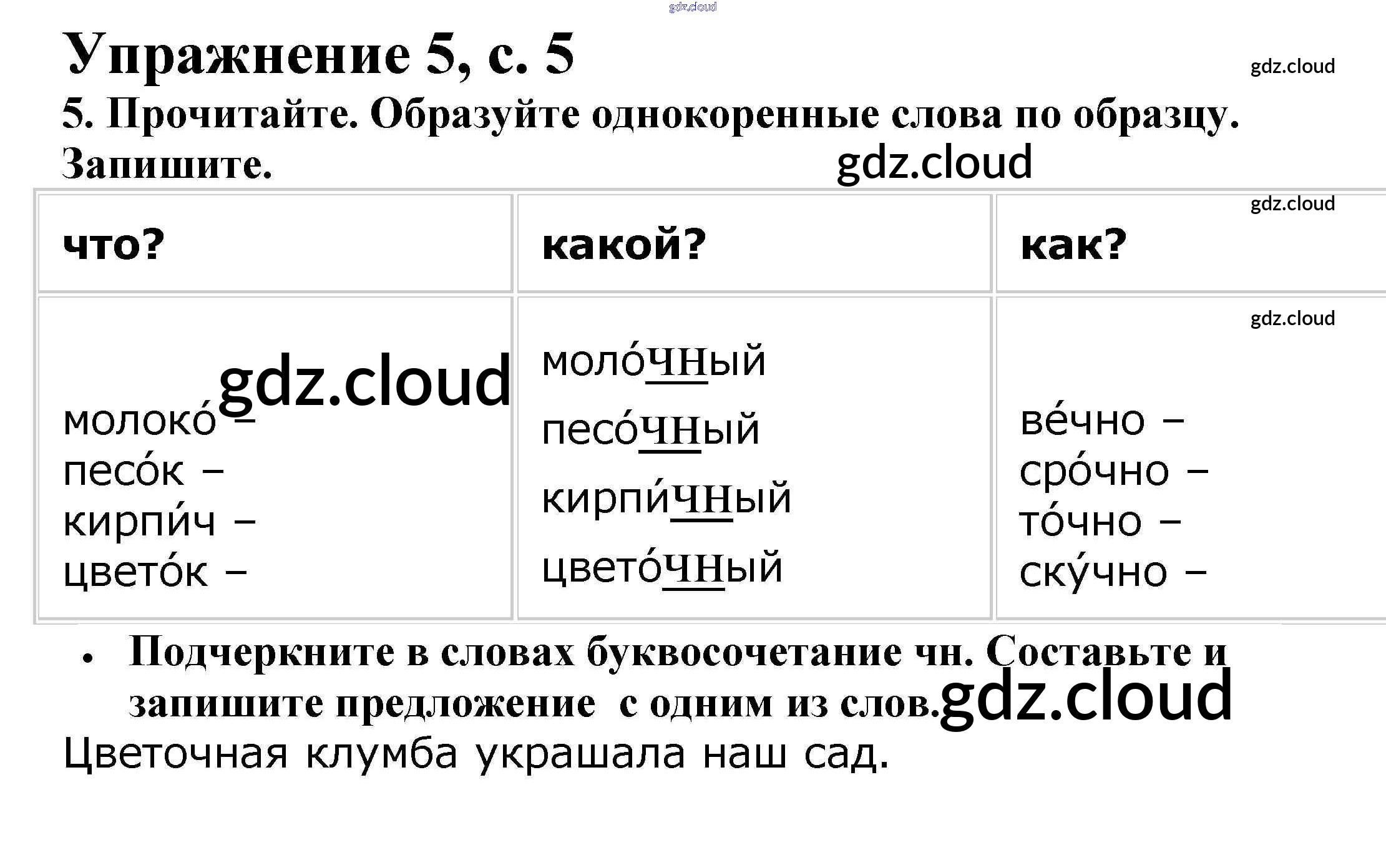 Ответ на задание 5 Рабочая тетрадь Русский язык за 2 (второй) класс Канакина Школа России 2012 Часть 1, 2