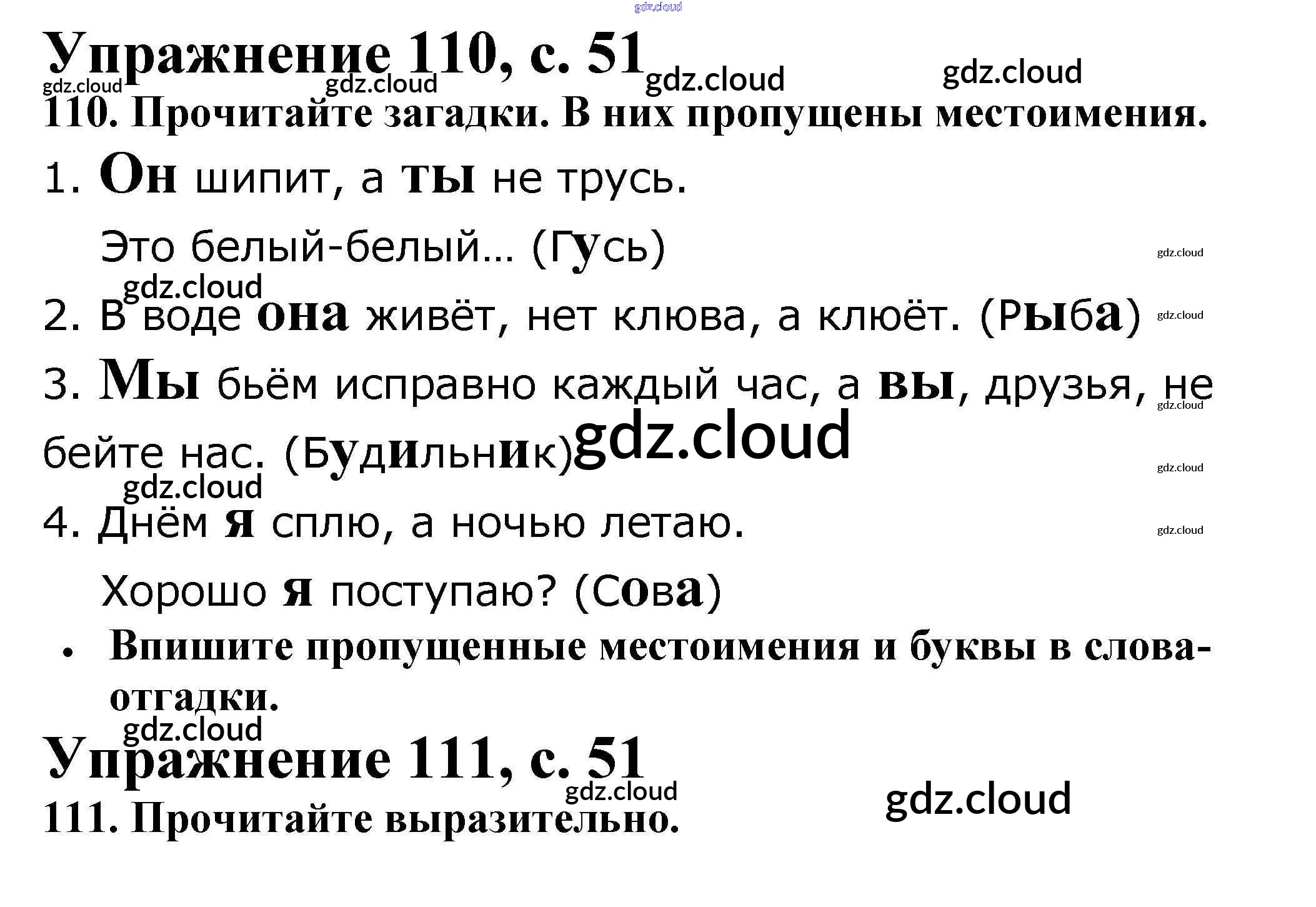 Ответ на задание 51 Рабочая тетрадь Русский язык за 2 (второй) класс Канакина Школа России 2012 Часть 1, 2