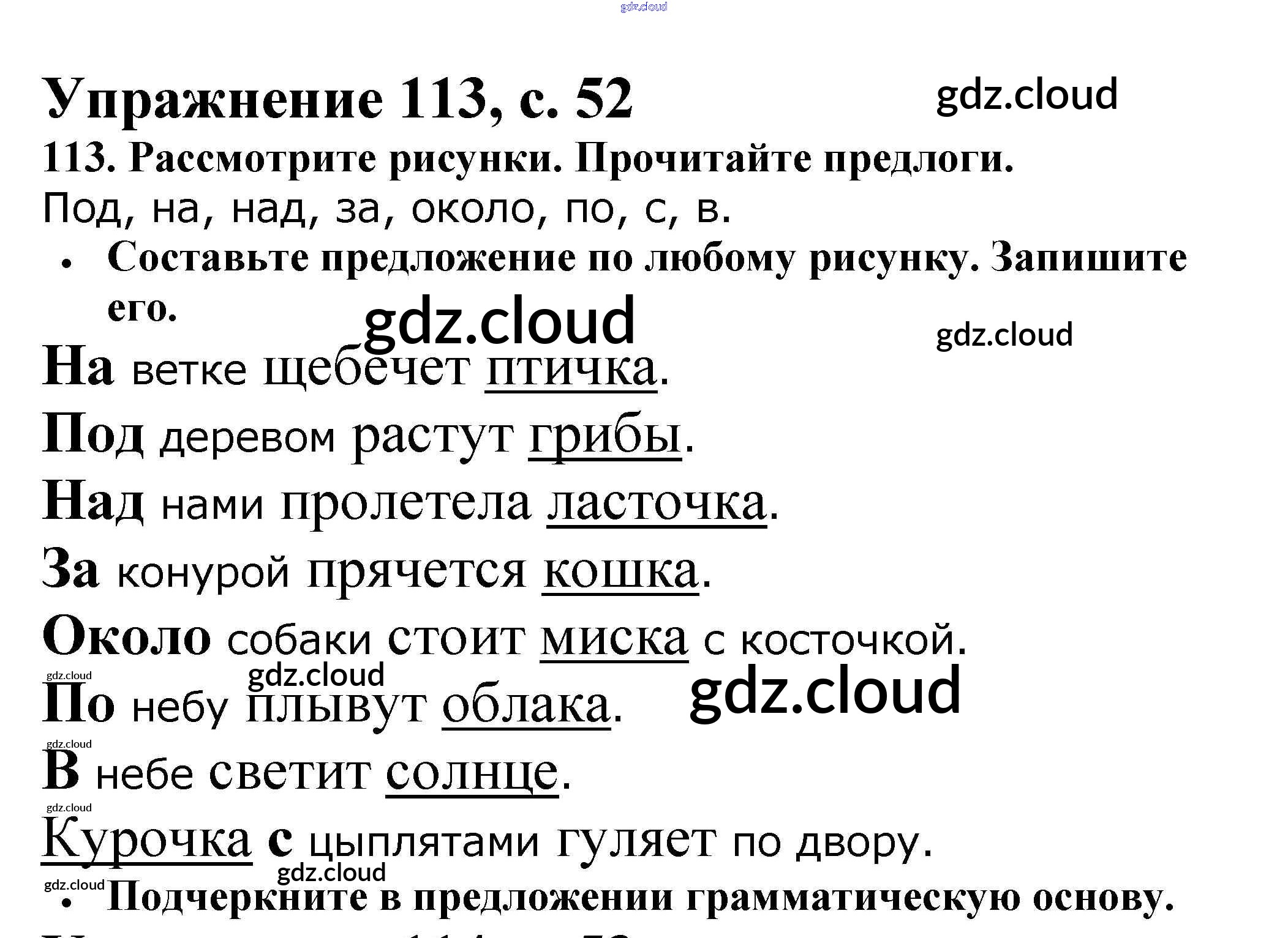 Ответ на задание 52 Рабочая тетрадь Русский язык за 2 (второй) класс Канакина Школа России 2012 Часть 1, 2