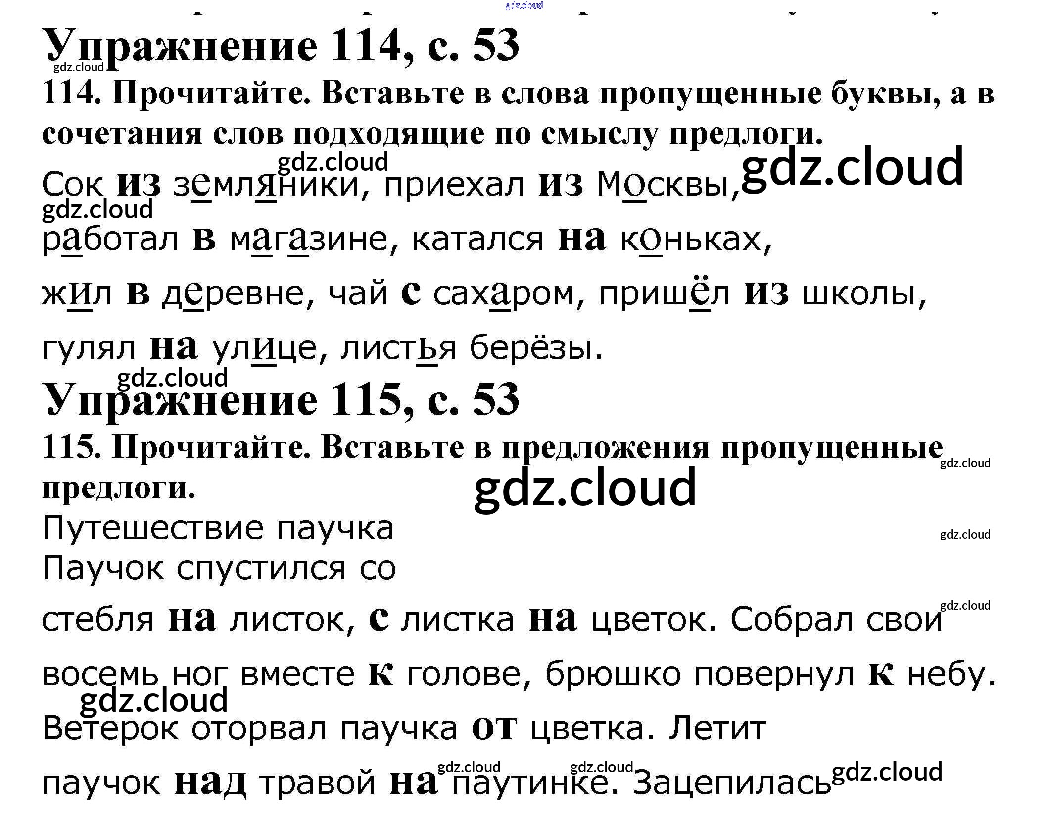 Ответ на задание 53 Рабочая тетрадь Русский язык за 2 (второй) класс Канакина Школа России 2012 Часть 1, 2
