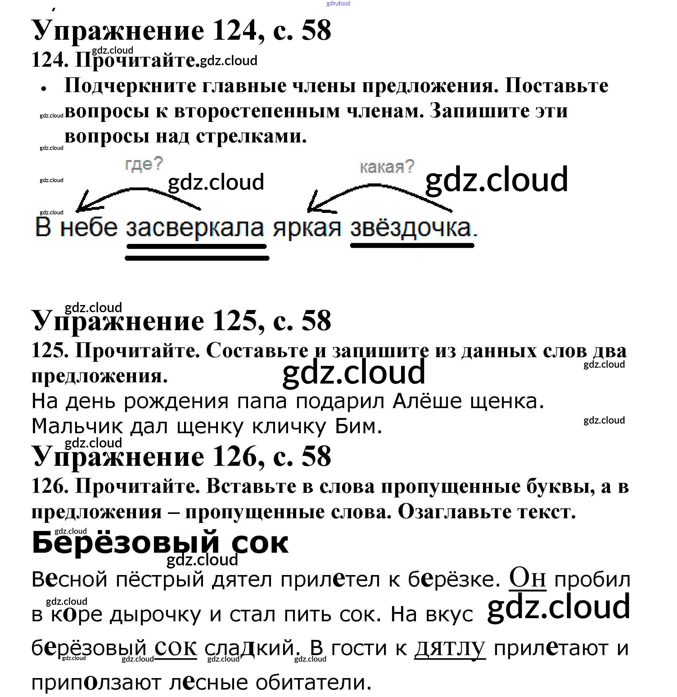 Ответ на задание 58 Рабочая тетрадь Русский язык за 2 (второй) класс Канакина Школа России 2012 Часть 1, 2